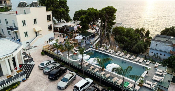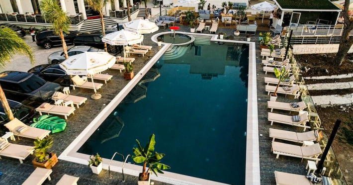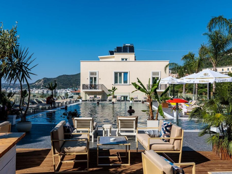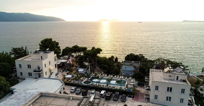 Localizare: Pe plaja. Rr. Dhimiter Konomi, 9401 Vlore, Albania Facilitati camere: AC, TV, baie cu dus si uscator de par, wi fi. Facilitati hotel: parcare, restaurant, bar, piscina, centru spa, terasa. Pagina web: http://www.lepalazzinehotel.com/