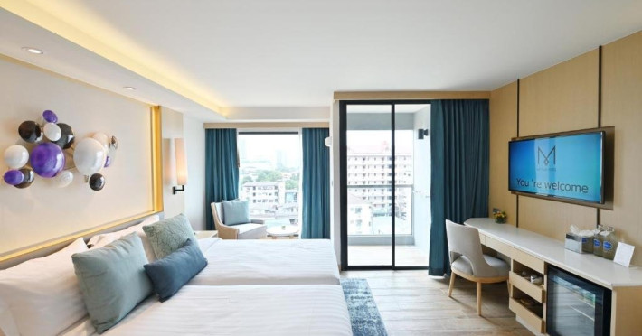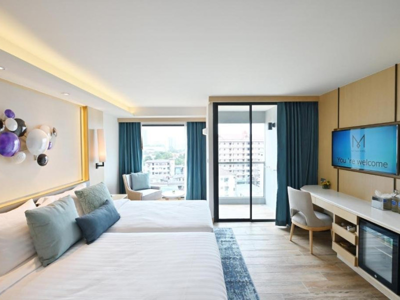 Descriere: Bine ati venit intr-o oaza privata de pe plaja nordica din Pattaya. Situat la inceputul faimosului district Naklua, pe faimoasa plaja din Pattaya, Hotelul M Pattaya va invita la un sanctuar la soare. Un punct fierbinte pentru persoane din interior si un secret bine pazit, exclusivist, modern si plin de cachet social. Hotelul nostru nou proiectat, cu spatiu arhitectural, sporeste fericirea refugiului nostru pe plaja, cu o piscina si o varietate de camere pentru a satisface configuratia dorita de camera. Toate acestea, iar scena animata de pe plaja Pattaya si viata de noapte centrala si cumparaturile sunt la doar o mica plimbare. Web site: https://www.mhotel.co.th/