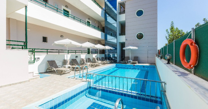 Facilitati hotel: Oaspetii pot beneficia de zona de servit masa, piscina exterioara cu zona pentru copii, gradina pe acoperis, sezlonguri si umbrele, parcare, receptie.