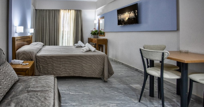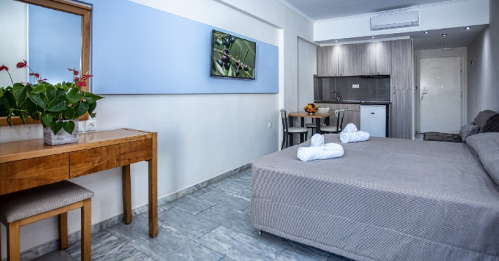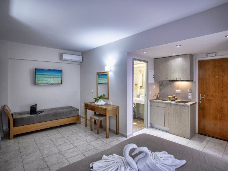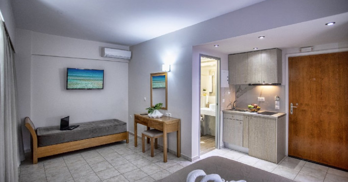 Descriere: Hotelul a fost construit in 2002 si renovat in 2015. In 2018 s-a construit aripa noua a hotelului, numita Mary Royal.Mary Hotel si Mary Royal sunt localizate in acelasi complex si impart aceleasi facilitati si servicii. Localizare: in Platanias, la aproximativ 100 m de plaja de nisip premiata cu Blue Flag si 5 km de orasul Rethymno. Sezlongurile si umbrelele pe plaja sunt contra cost. Dotari camere: Hotelul Mary are o capacitate de 24 de camere. Studiourile au in medie 30 mp iar apartamentele aprox 40mp. Camerele sunt dotate cu aer conditionat, mini bucatarie, frigider, facilitati pentru cafea/ceai, toaster, televizor, uscator de par, seif (contra cost), acces WiFi (gratuit), halate si papuci de baie. Facilitati hotel: salon de mic dejun, 2 piscine, 1 piscina pentru copii, prosoape de plaja, centru fitness, biliard, acces internet WiFi. Web site: https://www.maryhotel.gr/ Pentru anumite facilitati din hotel sau din camera, hotelierul poate solicita taxe suplimentare. In momentul sosirii la hotel solicitati receptionerului sa va informeze cu exactitate asupra lor. Taxa de statiune obligatorie - se plateste la receptie: