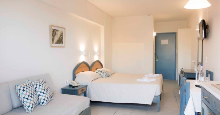 Melitti Hotel este un hotel de 2 stele situat in satul Perivolia, intr-o zona linistita de pe malul marii, la doar 30 de metri de plaja cu nisip si la aproximativ 2,5 kilometri de centrul orasului Rethymno, in Creta. Hotelul se afla la o distanta de 70 km de Aeroportul International Chania (CHQ) si 80 km de Aeroportul International Heraklion (HER). Acest hotel mic si prietenos ofera studiouri si apartamente in regim self-catering, fiind ideal pentru oaspetii care doresc un sejur relaxat, cu un grad mai mare de autonomie. Camerele sunt dotate cu aer conditionat/incalzire individuala gratuita, Wi-Fi gratuit, seif, televizor cu ecran plat si canale prin satelit, chicineta complet utilata (inclusiv mini-frigider, cafetiera cu filtru, fierbator electric si vesela de baza), masa si scaune pentru luat masa, baie privata cu dus, uscator de par si articole de toaleta. Fiecare unitate are terasa sau balcon mobilat. Printre facilitatile generale se numara receptia, lobby, camera pentru bagaje, piscina exterioara cu sezlonguri si umbrele gratuite (contra cost la plaja publica), precum si Wi-Fi gratuit in toate zonele comune. Pentru copii este disponibil, la cerere, un patut gratuit. Nota informativa: Pentru anumite facilitati din hotel sau din camera, hotelierul poate solicita taxe suplimentare. In momentul sosirii la hotel solicitati receptionerului sa va informeze cu exactitate asupra lor. Taxa turistica obligatorie - se plateste la receptie. Pagina web: https://www.melitti.gr/home.html