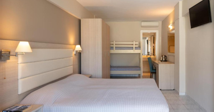 Camerele luminoase și confortabile sunt dotate cu aer condiționat, TV satelit și balcon sau terasă, majoritatea oferind vedere spre mare sau grădină. Programele de animație, mini clubul și facilitățile pentru copii fac din Mitsis Messonghi Beach o alegere excelentă pentru familii.