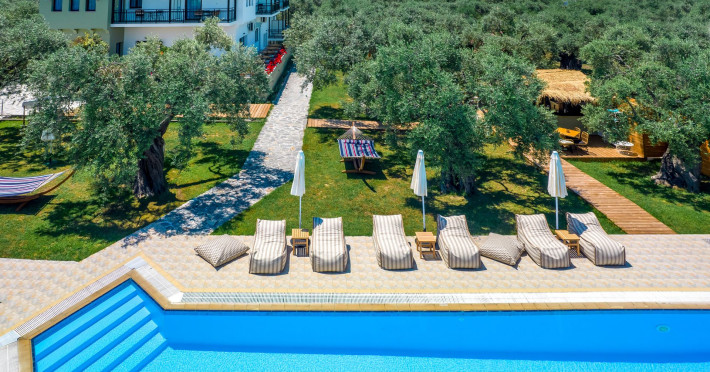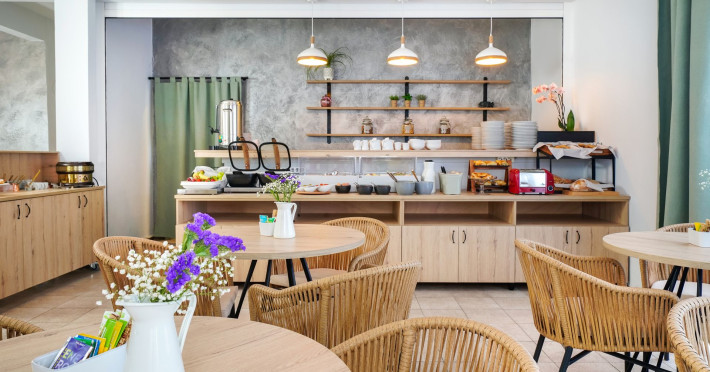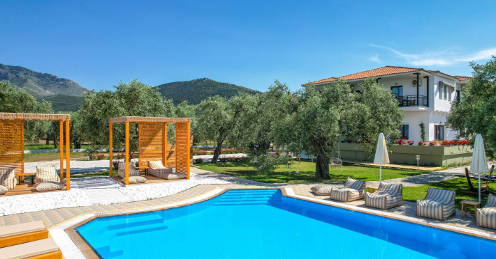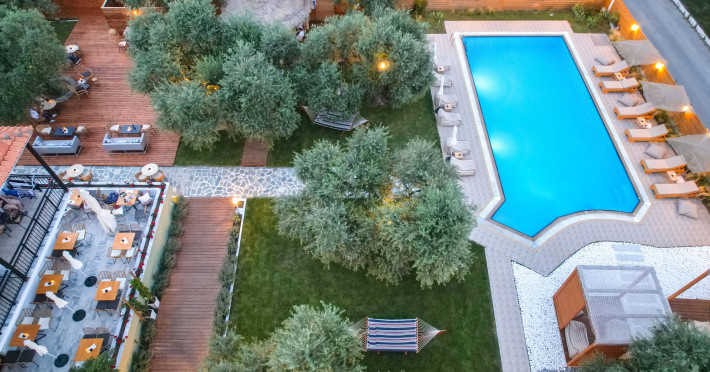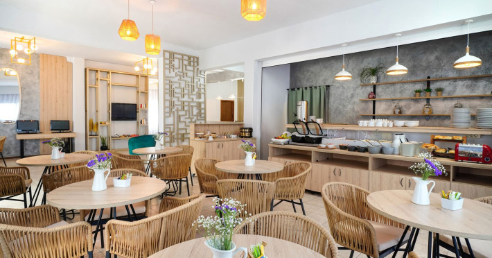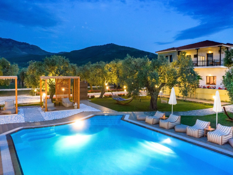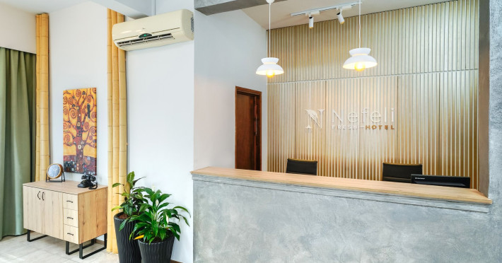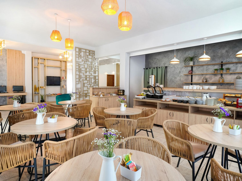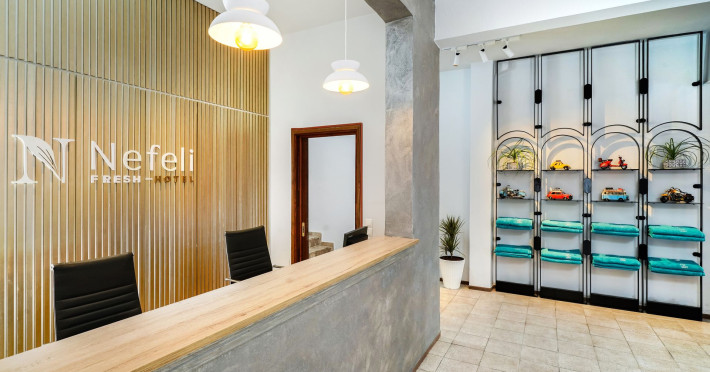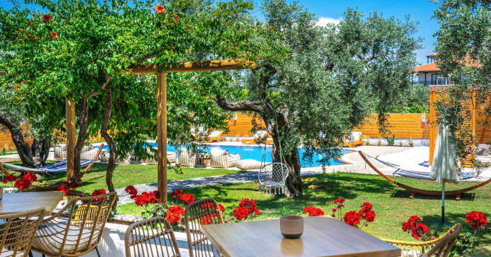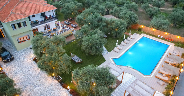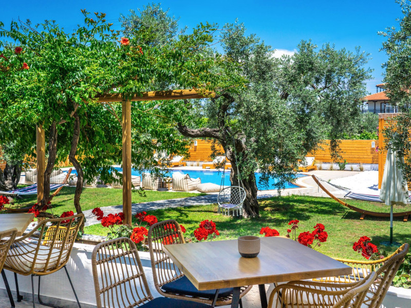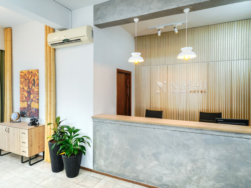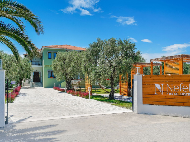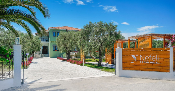 Hotel Nefeli Fresh in Skala Rachoni, Thassos is the ideal place for high-quality accommodation and its location among the refreshing nature offers peace and serenity. nbsp; Our 16 rooms are partially renovated and designed to offer comfort and ultimate relaxation. In our swimming pool, you will find tranquility and you will enjoy every minute of your holidays. nbsp; Our main priority is to make guests feel like they are in a home away from home and that is the reason that every year we try to improve our hotel and the services provided. nbsp; In our lobby, book lovers can find our library if they wish to spend some quality time reading a relaxing book. Our lobby also offers a television area for those who wish to relax in their spare time watching a tv show with their company. There you will also find a variety of board games, so your holidays will be full of playful moments. nbsp; If you need a P/C to work on anything necessary, Hotel Nefeli Fresh also provides you with a P/C area, where you may use the computers free of charge. For our little friends, there is a playground area for ultimate joyful moments and smiles during vacation. nbsp; Nefeli Fresh Breakfast We create the most delicious and traditional breakfast for you as well. Local products, such as honey, olive oil, and sweet flavors enrichen our breakfast buffet. You will taste also traditional Greek coffee in âHovoliâ, and you will be filled with Greek spirit.nbsp; Our breakfast is served 08.00 â 10.30 and it is provided with an extra cost. Hotel Nefeli Fresh holds a Greek Breakfast Certification. nbsp; Pool Nestled among the lush gardens with olive trees, our sparkling pool is ideal to rest under the bright island sun in Hotel Nefeli Fresh.nbsp; Relax in our sunbeds and refresh yourselves with a beverage or drink from our pool bar. There are also two private cabanas for ultimate relaxation and luxurious comfort. nbsp; Bar-restaurant You can enjoy our pool from 10.00 â 19.00, while our pool bar is open from 10.00 â 24.00 and it is available for drinks, coffees, and beverages.nbsp; Our kitchen is open 11.00 â 23.00, room service is also available, and it may serve you light snacks, such as club sandwiches, salads, pizzas, or cold plates. We use the most qualitative products with local flavors. nbsp; Useful Information for Your Stay: Free private parking spaces available. Pets are not allowed. Pool usage is permitted during the day, respecting quiet hours. Baby cot available upon request. *All guests staying at Nefeli Guesthouses are welcome to use all the facilities of Nefeli Fresh Hotel, including the pool, common areas, and other hotel facilities. nbsp;