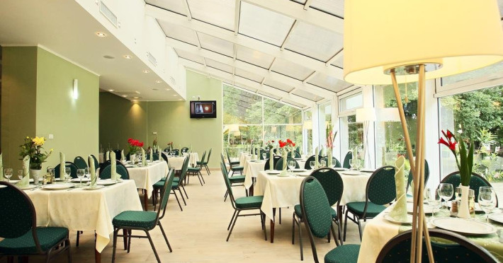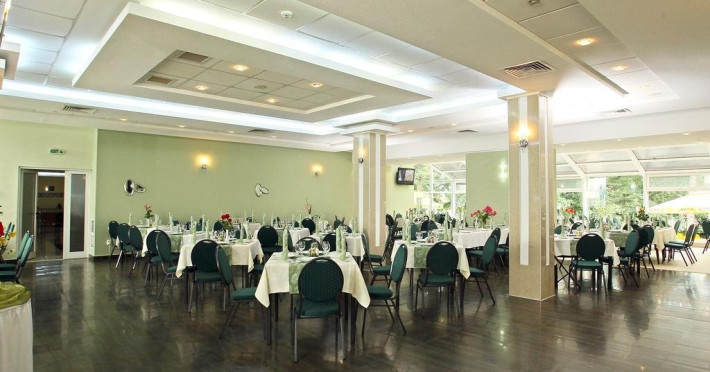 Restaurant: * 120 de locuri * meniu Aa la carte sau la alegere * bufet * bar de zi * terasa * servicii de catering