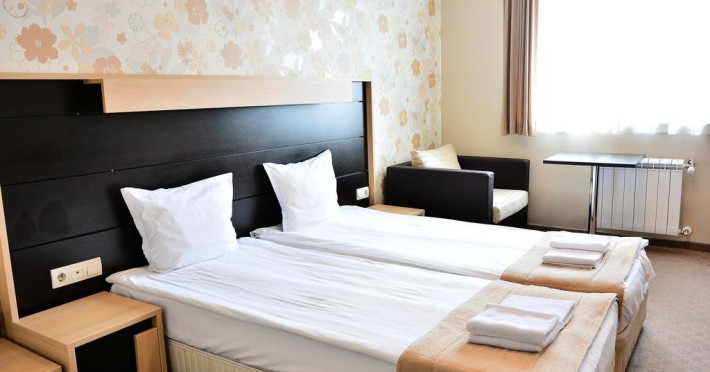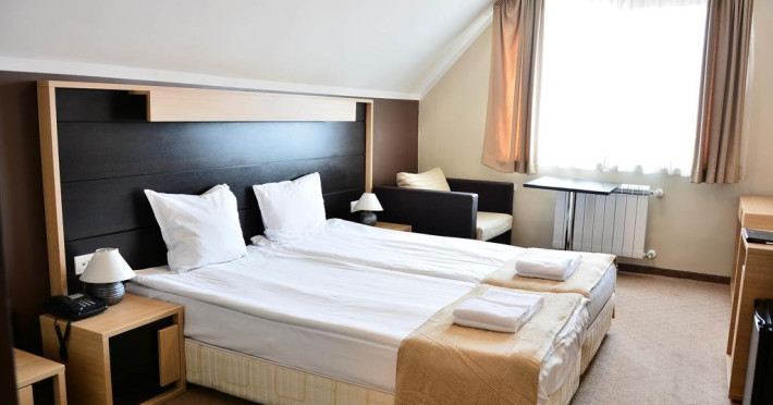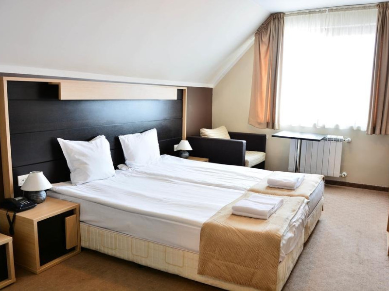 Localizare: La 500 de metri de centrul statiunii si la 1.2 km de telegondola. Dotari camere: Camerele sunt dotate cu telefon, TV, wifi, mini bar. Facilitati hotel: Hotelul pune la dispozitia clientilor restaurant si mehana (restaurant in stil national), lobby bar, Wi-Fi in lobby, seif, fier de calcat, spalatorie (contra cost), parcare pazita gratuita. Accesul cu animale de companie este permis (contra cost, la cerere). De asemenea, turistii beneficiaza de sala de fitness, jacuzzi, sauna, baie de aburi, zona de relaxare. Pentru sportivi este disponibila o sala de sport multi-functionala: lupte, taekwondo, kick-box, MMA, aikido, karate, dansuri sportive, dansuri populare, gimnastica, aerobic, tae-bo, pilates, yoga si tenis de masa. Site web: http://hotel-olymp.net/en/