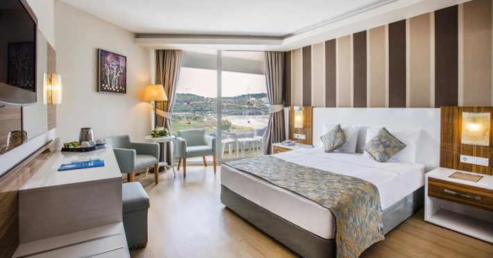 Palm Wings Ephesus Beach Resort ex ;Ephesus has existed for thousands of years along the shore of the deep-blue Aegean, under the hot sun on bountiful soil set within the shadows of olive trees. Not unlike a dance where blues and greens mingle with one another with extraordinary grace. Participate in this dance, too, and experience the vacation of your dreams.Close (80 km) to the Izmir Adnan Menderes Airport and 5 km away from the Ephesus Ruins, the Efes Suuml;rmeli is located in the Bay of Pamucak right at sea level. Each of its rooms is set within an incomparable turquoise atmosphere and has a view of the sea and a balcony. It has a total of 434 rooms, including standard and aparts with accompanying gardens. The Efes Suuml;rmeli awaits your visit with its sports facilities, domestic and universal foods, and specially designed congress-conference-meeting halls that meet international standards.nbsp;
