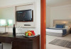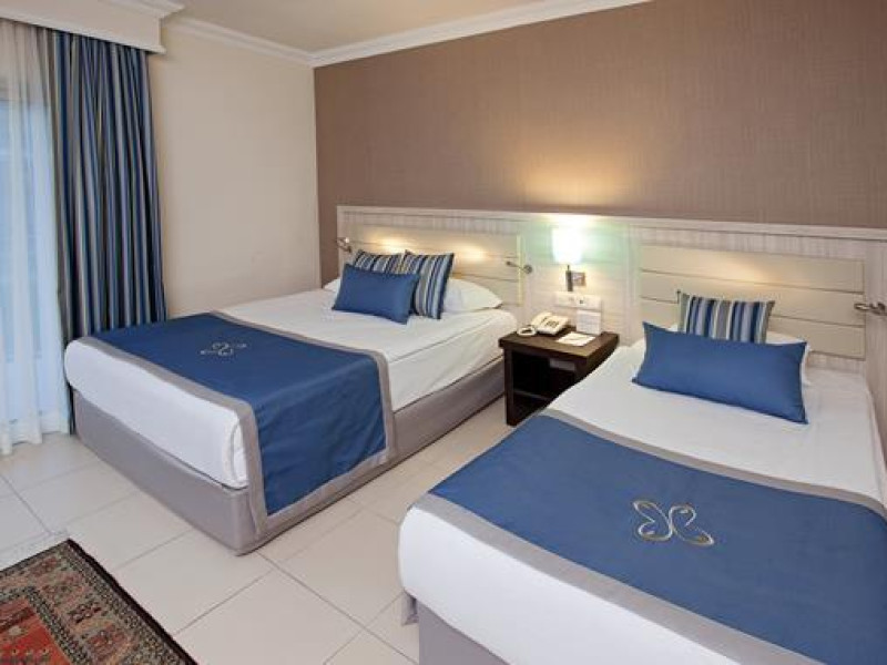 All rooms have a cooling and heating system (central air conditioning in the main building / split air conditioning in the bungalows), telephone, LED LCD TV, satellite TV, mini bar (replenished everyday / 4 bottles of water, 2 Mirinda, 2 Pepsi-Coke, 2 Yedigün, 1 soda and 2 beer), hair-dryer, safe deposit box, balcony/terrace, 220V electricity, the flooring in the main building is carpet and ceramic tiles in the bungalows, kettle and tea amp; coffee varieties (in all rooms), milk warmer (upon request). Welcome cocktail on arrival. No room service
