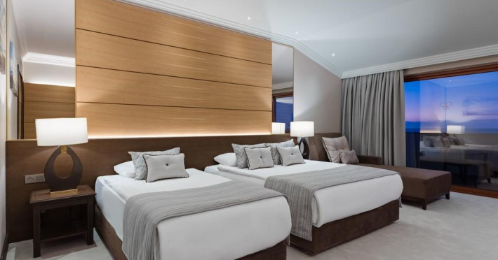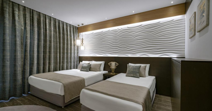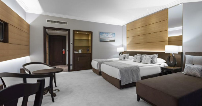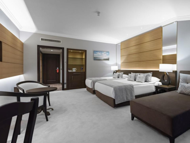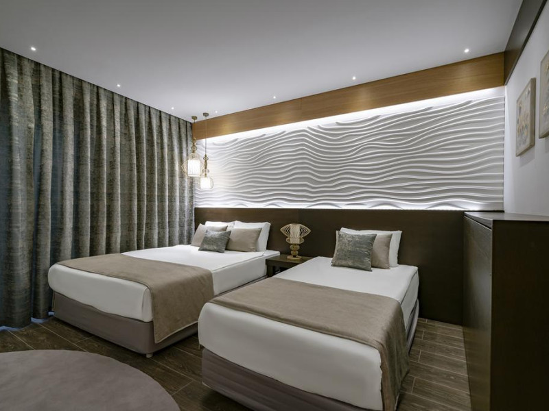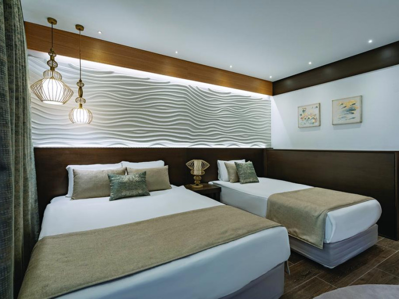 Hotelul dispune de o cladire cu 4 nivele si 36 de cladiri Bungalow cu 1-2-3 nivele. Camerele club (bungalow) standard beneficiaza de aer conditionat, dus/cada, foehn, halat si papuci, telefon, minibar, seif (gratuit), pardoseala cu mocheta (in main building), sau gresie (in bungalow), ceainic electric (set ceai si cafea), televizor, balcon, WiFi gratuit. Curatenie in camere se efectueaza zilnic.