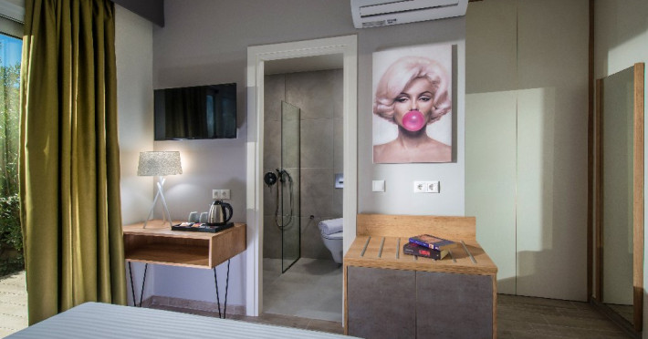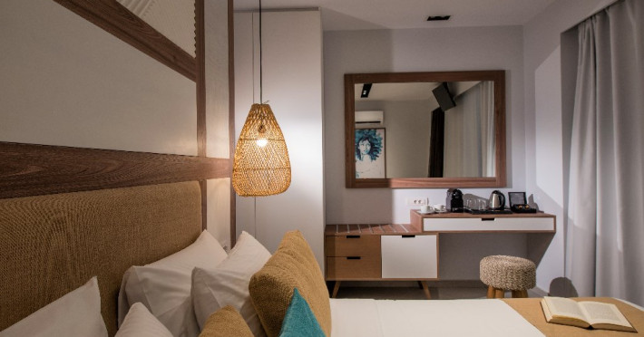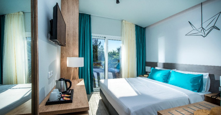 Dotari camere: Paralos Lifestyle Beach Resort are camere dodate cu linie telefonica directa, TV satelit, internet Wifi, baie cu dus, uscator de par, minifrigider, aer conditionat, facilitati pentru preparat ceai/cafea.