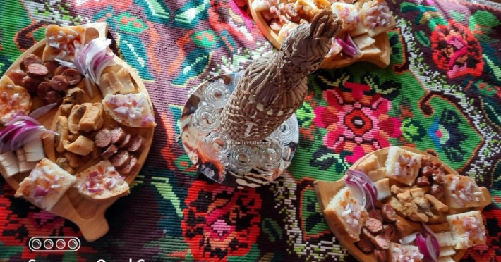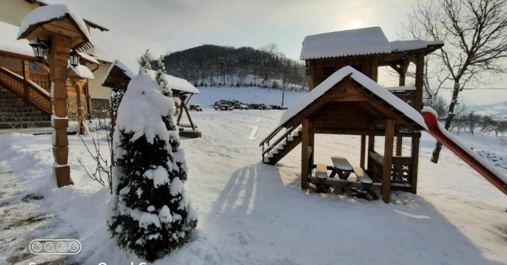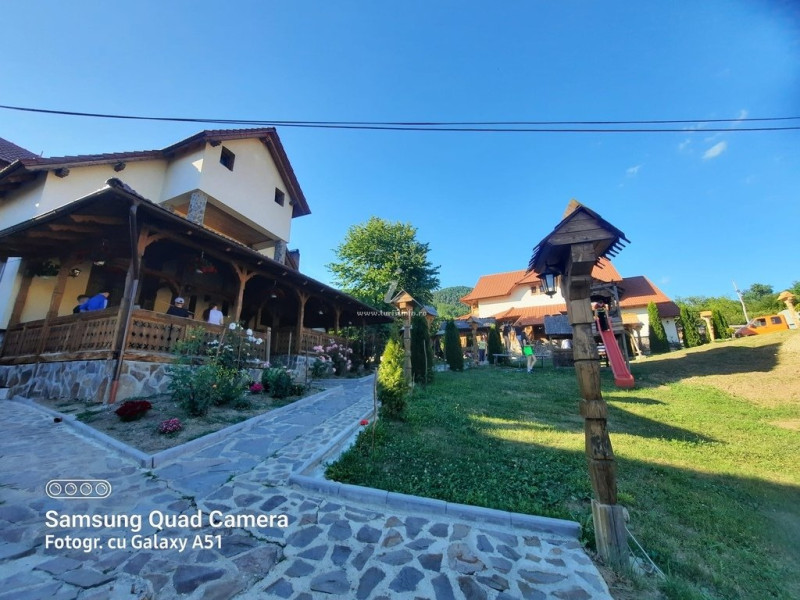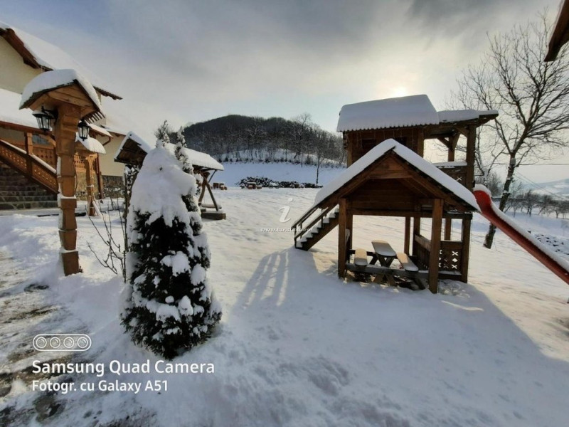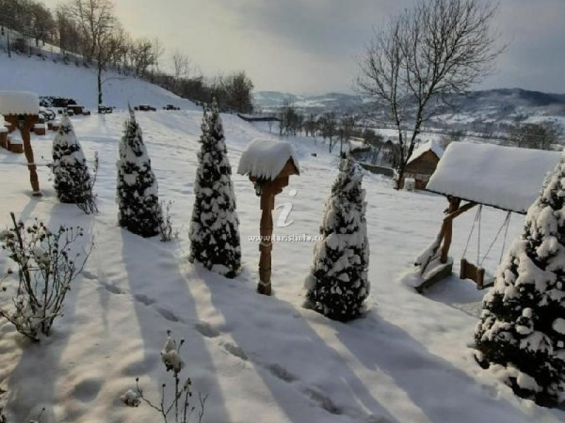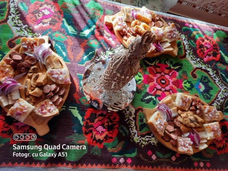 Din meniu: platouri cu aperitive traditionale, supa de pui, ciorba de legume, fasole cu ciolan, gulas, piure de cartofi cu friptura, tocana cu carne si jumari, mamaliga cu branza, balmos, sarmale cu crnati, placinte cu branza si smantana, branza de vaca cu grostior, pancove, prajituri. Si in special nemaipomenita horinca La cerere organizam Si seri folclorice specific zonei! ! ! La cere avem disponibile contra cost :ciubar, plimbri cu trsur! Organizam tabere cu copii;organizam team Building! Va asteptam cu drag!