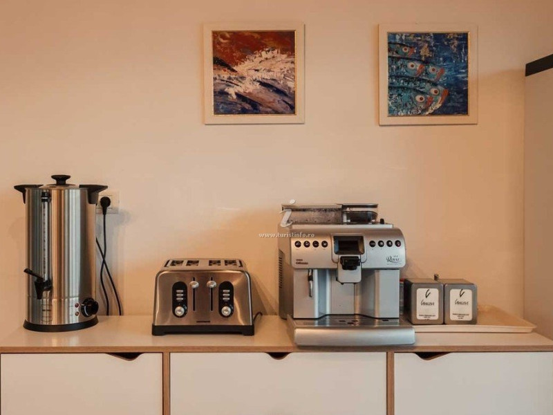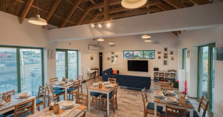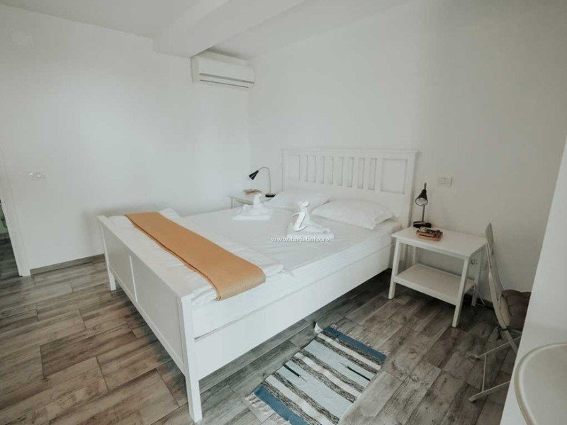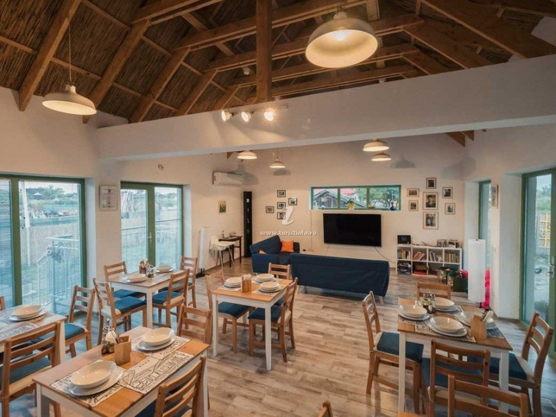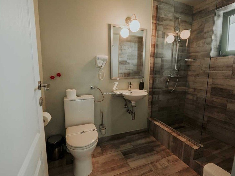 Un aspect important de precizat este faptul ca fiecare camera detine o baie proprie. Iar aceasta contine grup sanitar nou, lavoar, dus cu paravan de sticla securizata de 8 mm, apa calda non-stop, calorifer electric, uscator de par, halate si prosoape de baie. Cat despre spatiul de servit masa si acesta a fost dotat cu mobilier nou din care amintim: televizor, aparat de aer conditionat si tot ce este necesar pentru a servi preparate traditionale din peste in special, dar si alte diverse preparate si chiar deserturi pregatite in bucataria proprie.