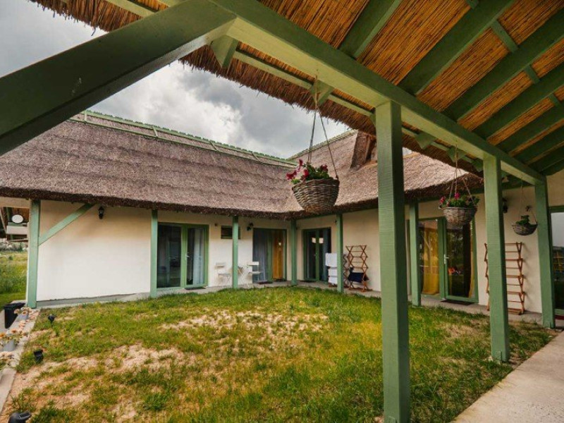 Altfel spus pensiunea Drill detine 5 camere de cazare, 2 apartamente, spatiu de servit masa, spatiu de petrecere si joc, bucatarie, baie de serviciu, terasa, foisor, dar si o curte generoasa pentru activitati in aer liber si pescuit chiar din curtea pensiunii pe canal.