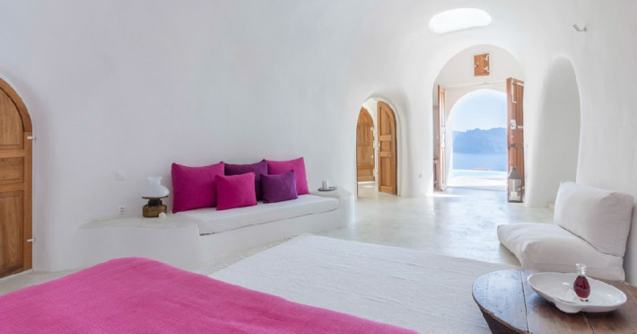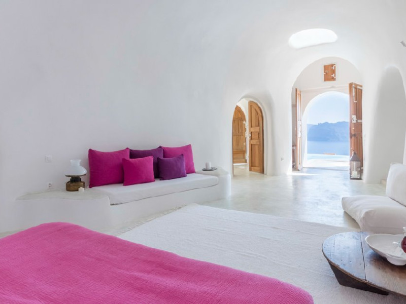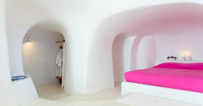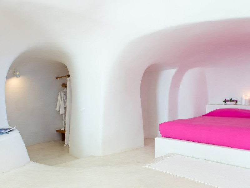 Dotari camere: Hotelul este constituit din 20 de case private, situate in pesteri restaurate, vechi de 300 de ani. Construite de mesteri locali, fiecare casa este diferita de celelalte, totusi interioarele pastreaza acelasi stil cicladic cu forme organice si suprafete netede. Fiecare suita are in componenta dormitor si zona de relaxare.