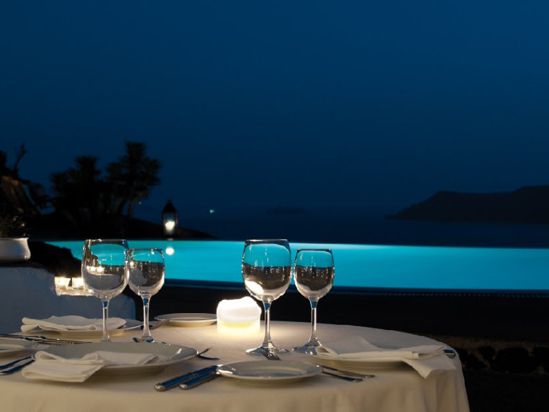 Facilitati HOTEL PERIVOLAS: Hotelul pune la dispozitia oaspetilor numeroase facilitati: receptie 24h, birou de turism, spalatorie/calcatorie, parcare privata, biblioteca, terasa pentru plaja, gradina, piscina infinity, aer conditionat, seif, centru SPA cu sauna, masaj, sala fitness, baie turceasca, bar, snack bar, 2 restaurante. Restaurantul Perivolas, aflat intr-o pivnita de vinuri restaurata, serveste preparate din bucataria mediteraneana si greceasca, pregatite cu produse locale.