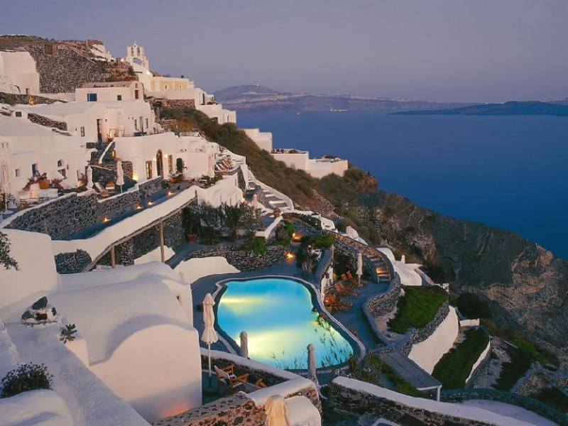 Descriere HOTEL PERIVOLAS: Construit sub forma de amfiteatru pe stancile de deasupra Marii Egee, hotelul este la o cateva minute de mers pe jos de satul pitoresc Oia. Hotelul este gandit ca un loc de retragere, de escapada intima, aici nu se gasesc televizoare si DVD playere pentru ca este un loc linistit pentru relaxare si odihna.
