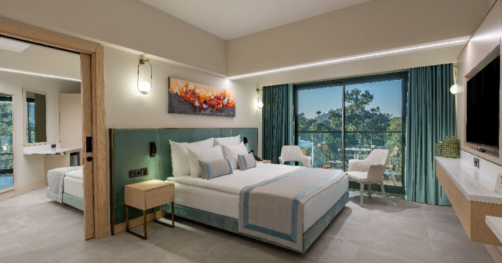 Facilitati hotel: Hotelul pune la dispozitia oaspetilor: restaurant (inclusiv meniu dieta), 2 restaurante a la carte (cu rezervare), snack-bar, patiserie, mai multe baruri inclusiv la piscina si la plaja, piscina exterioara, piscina interioara, centru Spa, sala fitness, spectacole si muzica live, petreceri tematice, volei pe plaja, tenis de masa, darts, Wi-Fi de mare viteza gratuit in zonele publice, aer conditionat, baby concept, kids club, teenage club, aquapark.