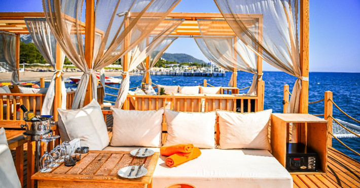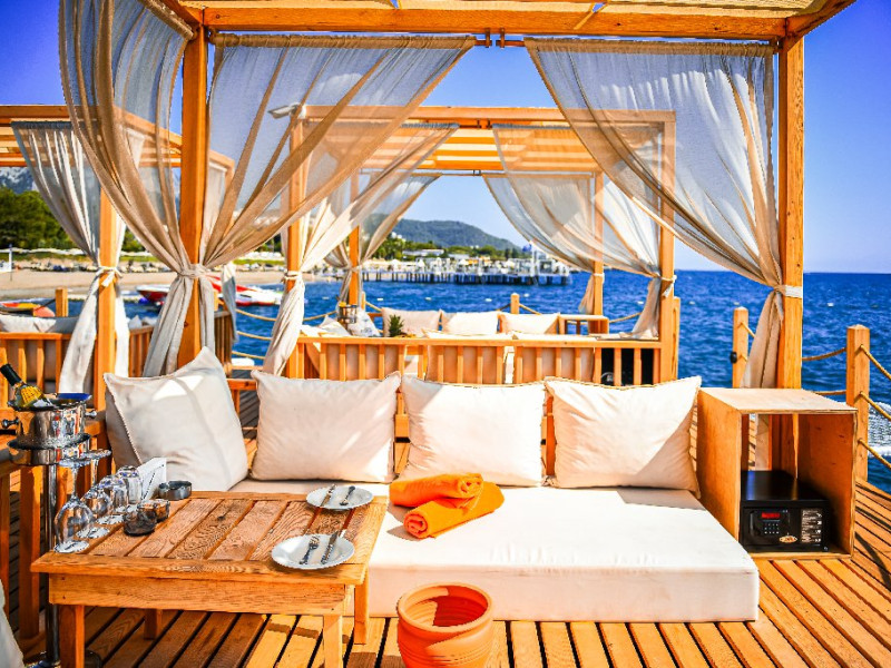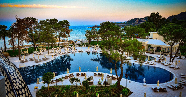 Descriere: Hotelul de 5 stele este amplasat pe plaja privata cu nisip si pietris, certificata Blue Flag, din Goynuk, in zona Kemer.
