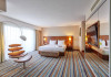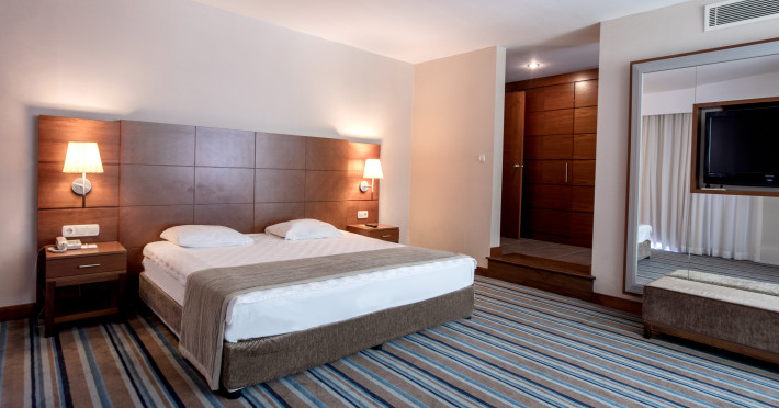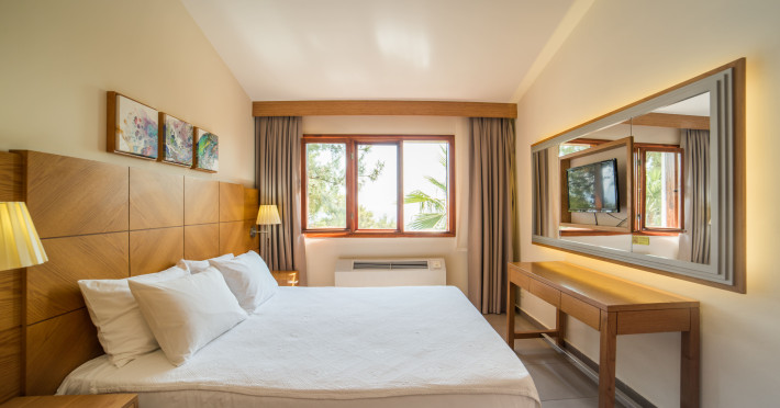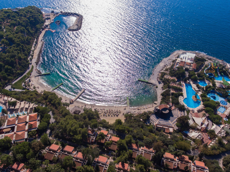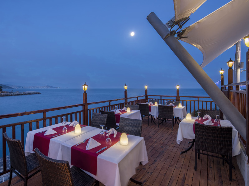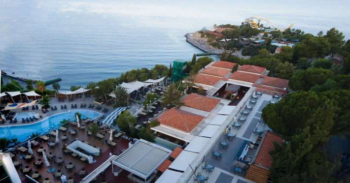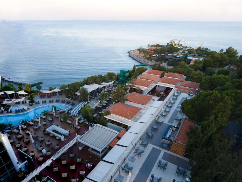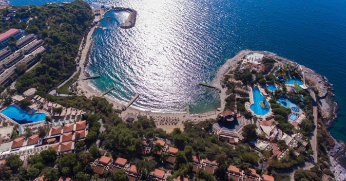 In the vicinity of the hotels own beach lies the hotel Pine Bay Holiday Resort. The city centre is around 7 km away. On the beach are cushions and beach towels available. At the beach there is a bar serving refreshing drinks. The seasonally air-condIn the vicinity of the hotels own beach lies the hotel Pine Bay Holiday Resort. The city centre is around 7 km away. On the beach are cushions and beach towels available. At the beach there is a bar serving refreshing drinks. The seasonally air-conditioned hotel has Wi-Fi, a supermarket, a boutique, a hairdresser, a jacuzzi as well as parking spaces. In the outdoor area of the property you will find a seasonally heated pool (open all year), where sun loungers and pool towels are available for free. For children there is also a childrens pool. Furthermore, you can relax outdoors on a roof terrace. Your valuables can be stored in the hotel safe. There is also a laundry service available at an additional cost to customers. For guests on their honeymoon, the hotel has special offers such as a romantically-decorated room, romantic dishes in the restaurant or a basket of fruit in the room. Euro/Master Card and Visa are accepted as means of payment. Catering Breakfast is offered from the buffet. Enjoy your lunch from the buffet. Dinner is also served as a buffet or à la carte. For the meals, there are a buffet restaurant with terrace and the cafeteria as well as the pool bar. The drinks menu of the hotel includes coffee and tea. Distances Airport: approximately at 60 km Sports amp; Leisure To keep your fitness up on holiday, there is a gym for guests to use. In the surrounding you can also take advantage of a range of water sports, including bananaboat riding , jet skiing, water skiing and water aerobics. If you want to stay on the ball during your holidays, youll find the chance to play football or basketball. During your holiday you can also take part in aerobics courses, in Zumba courses and in yoga courses. Those who want to practice archery (for a fee) will find facilities for this at the hotel. With beach volleyball and boccia various other sports offer a lot of variety on holiday. In addition to a tennis court there is also a tennis school. Due to their scenic beauty the surroundings of your hotel are also suitable for extensive hikes. Let yourself be pampered in the hotels wellness facility. Infants can be looked after in the hotels own baby club. There is a babysitting service (extra fee) in the hotel, so that adults can also find some time to relax. Junior hotel guests can also let off steam in the mini disco. In terms of adult entertainment, evening shows and live music are presented. Additional information The 3-storey hotel has a total of 625 rooms. The hotel staff speak English, German, Russian and Turkish.