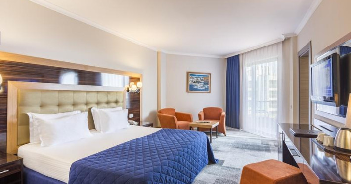 Beaches of golden sands that seem to stretch on forever, turquoise blue waters fading into cloudless horizons, deep green forests of invigorating cypress and monumental ancient testaments to time - these are just a few of the things the Turkish Riviera has to offer. With its enviable spot right on the coast in the middle of a lush golf paradise, the newly renovated Maritim Pine Beach Resort is the perfect starting point for discovering everything this exciting region affords. The hotel itself is nestled amidst a 120,000 sq.m. property that encompasses cypress forests, orange trees and olive groves.