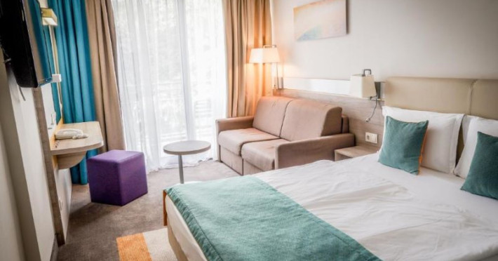 Hotelul Ralitsa Aquaclub se găsește la aproximativ 950 de metri de plajă, oferind o atmosferă relaxantă și un peisaj înconjurător abundent în verdeață.