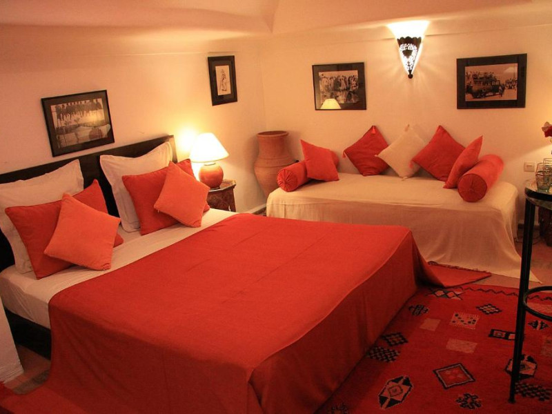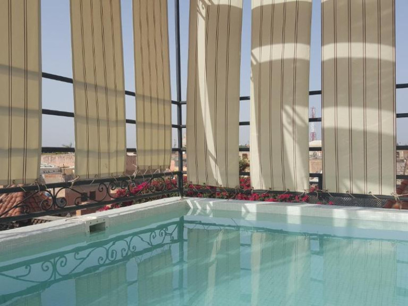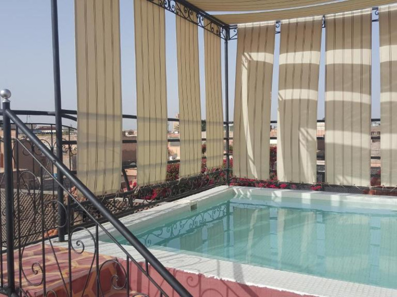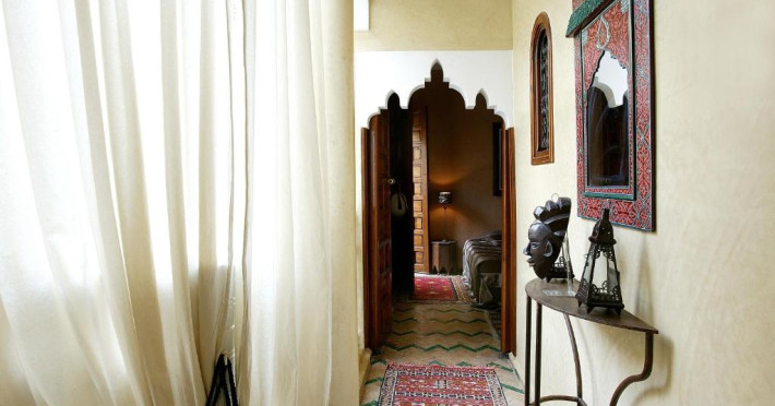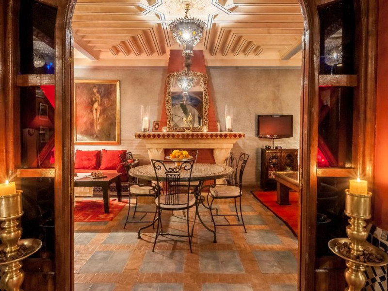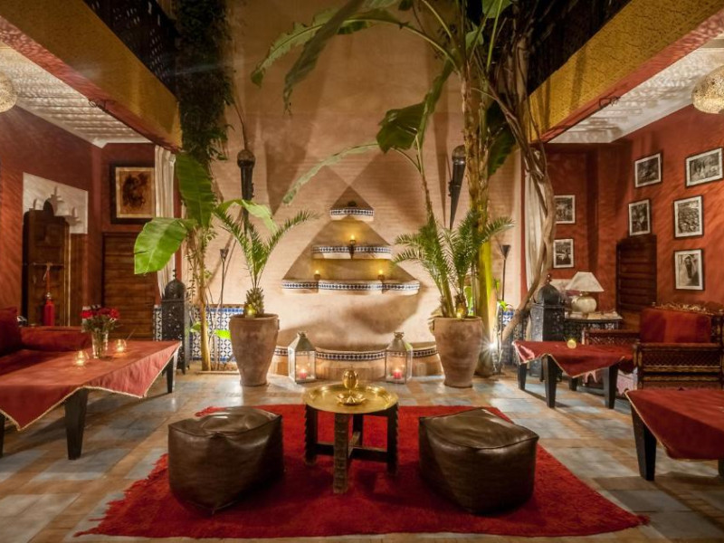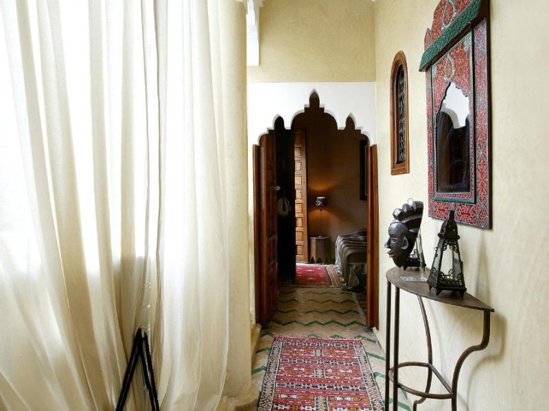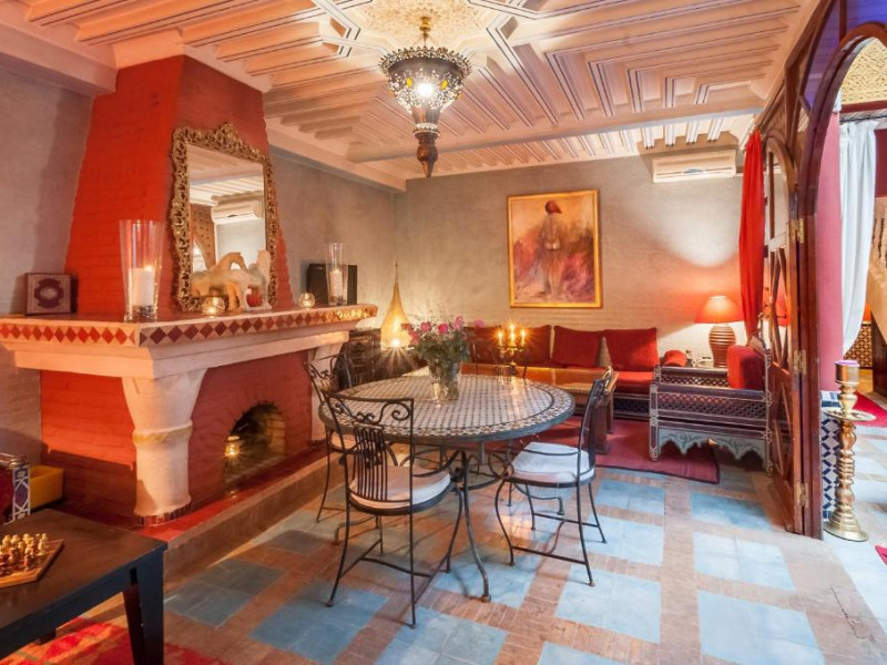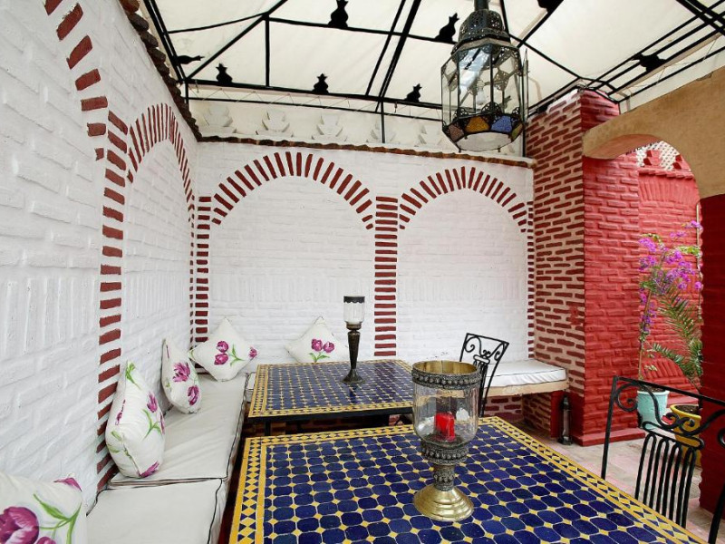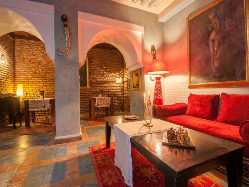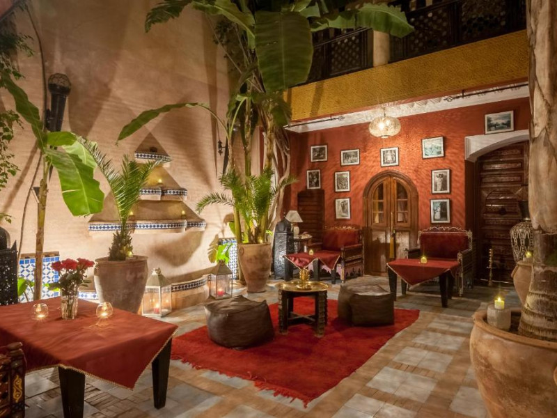 Camerele sunt decorate in stil marocan elegant, cu mobilier artizanal și detalii orientale rafinate. Curtea interioară cu piscină și grădină oferă un spațiu perfect pentru relaxare după o zi de explorare a orașului.