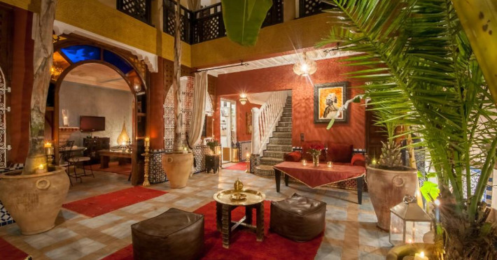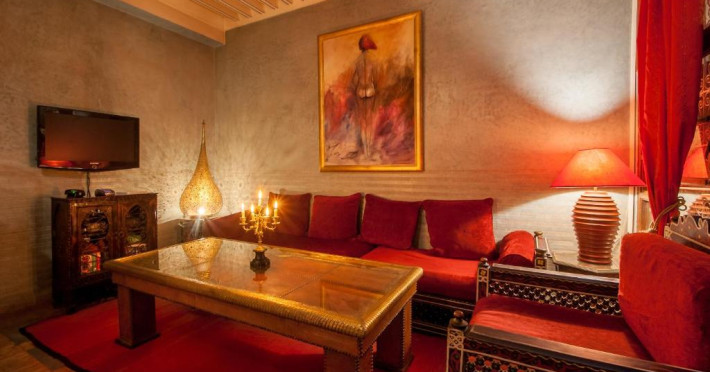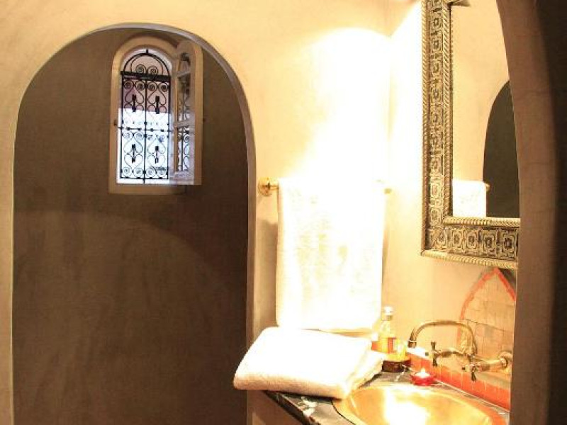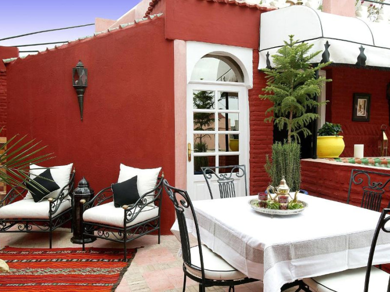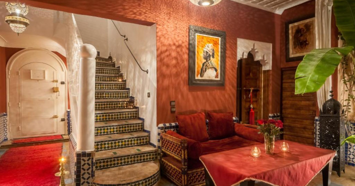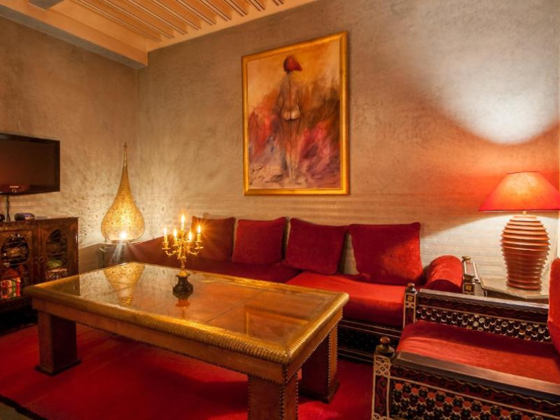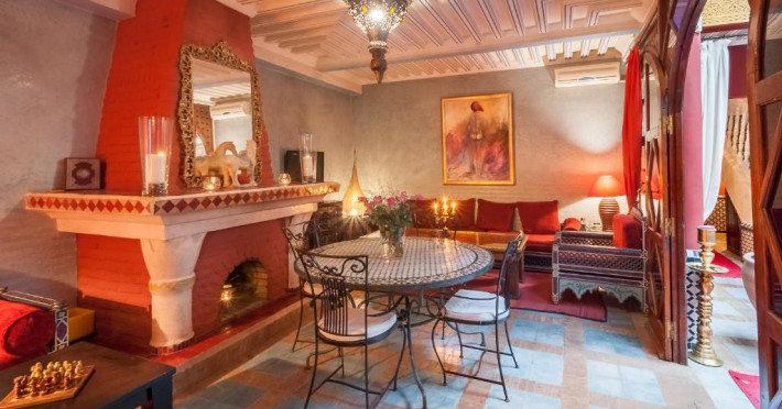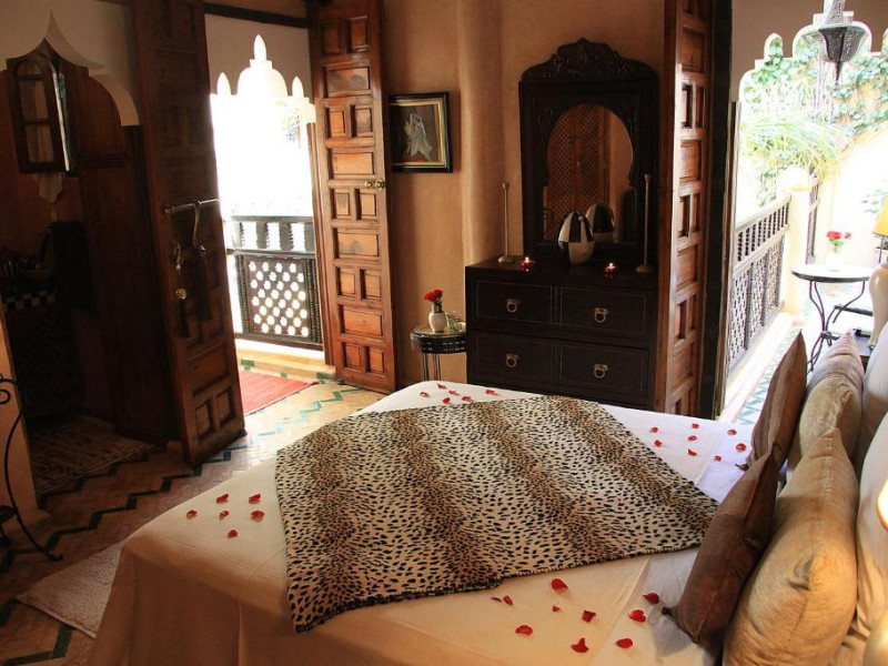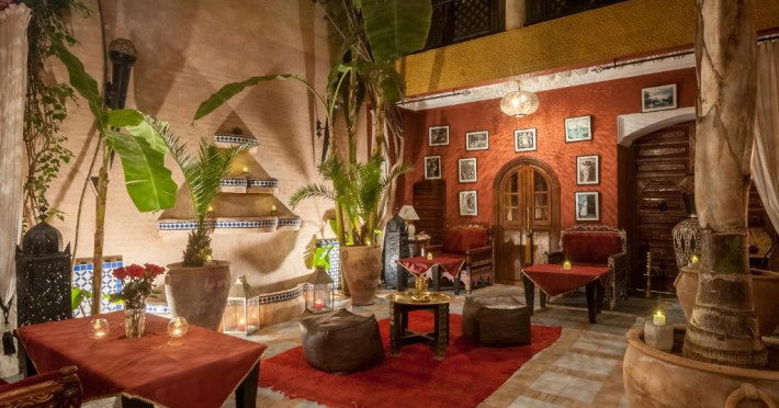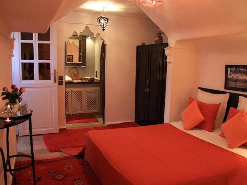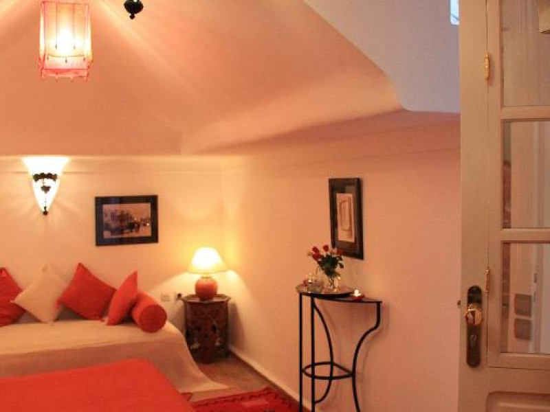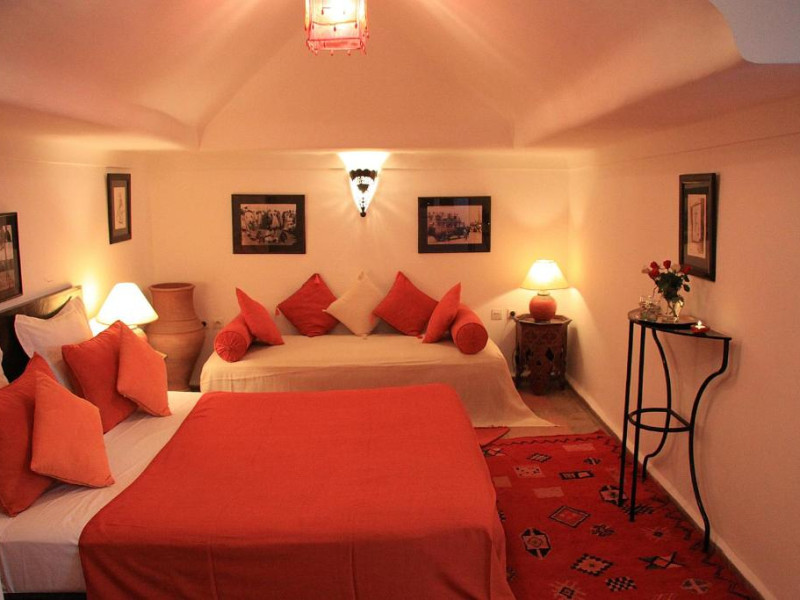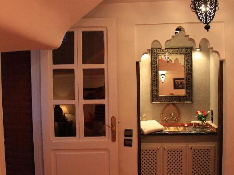 Camerele sunt decorate in stil marocan elegant, cu mobilier artizanal și detalii orientale rafinate. Curtea interioară cu piscină și grădină oferă un spațiu perfect pentru relaxare după o zi de explorare a orașului.