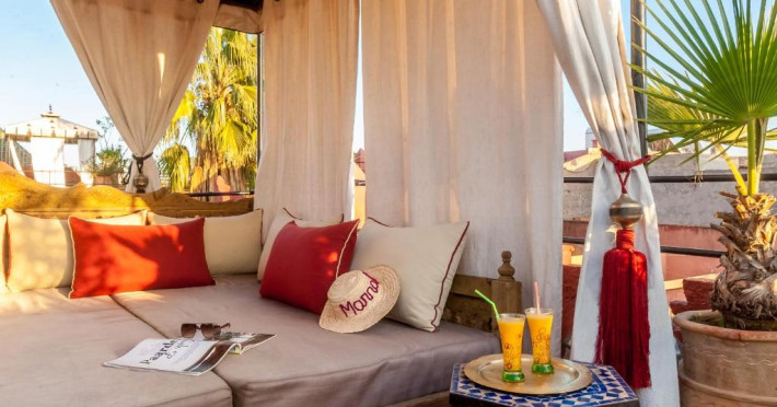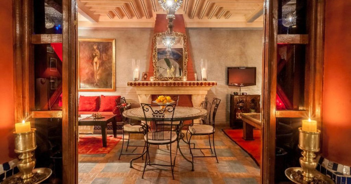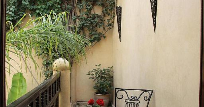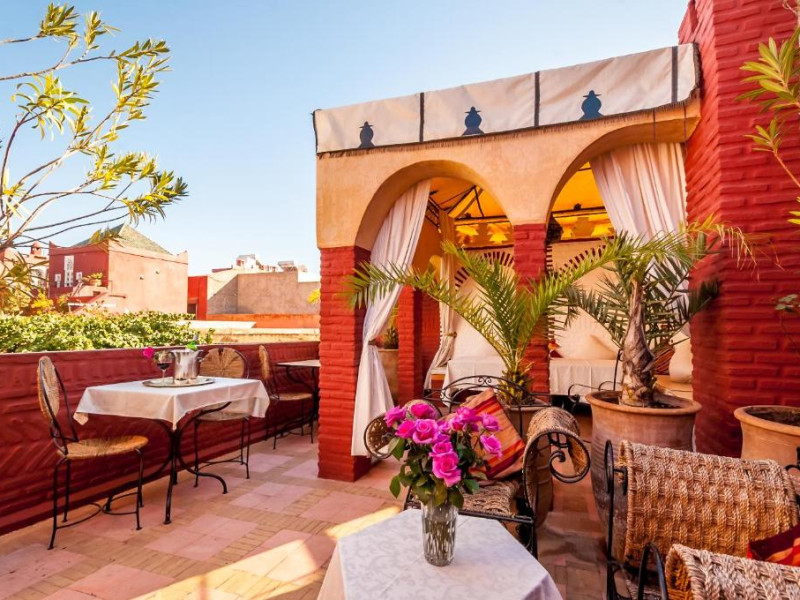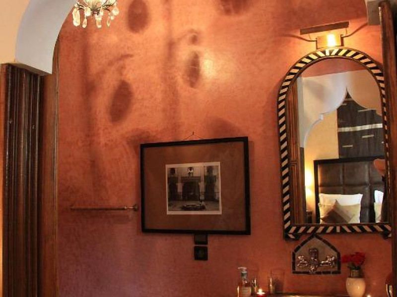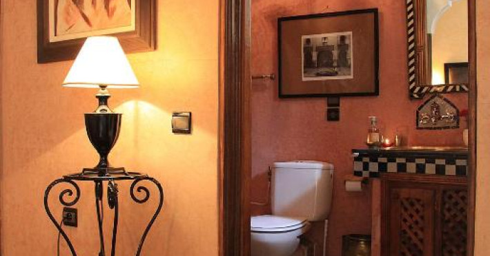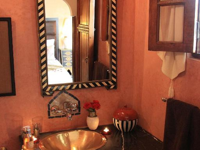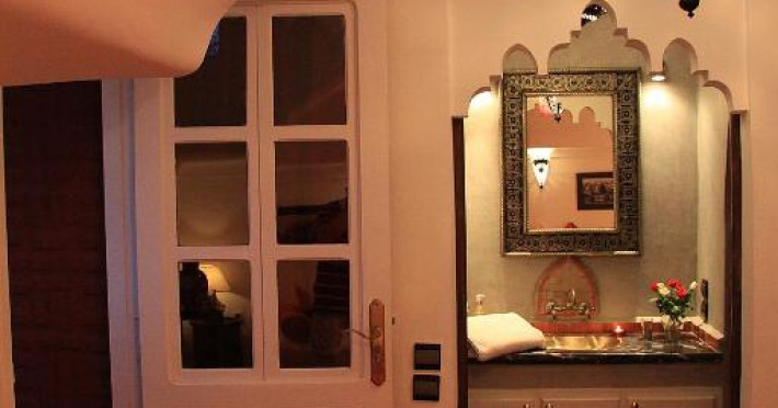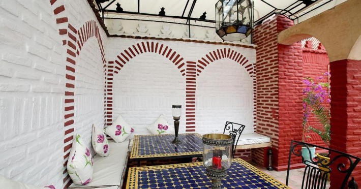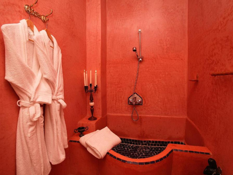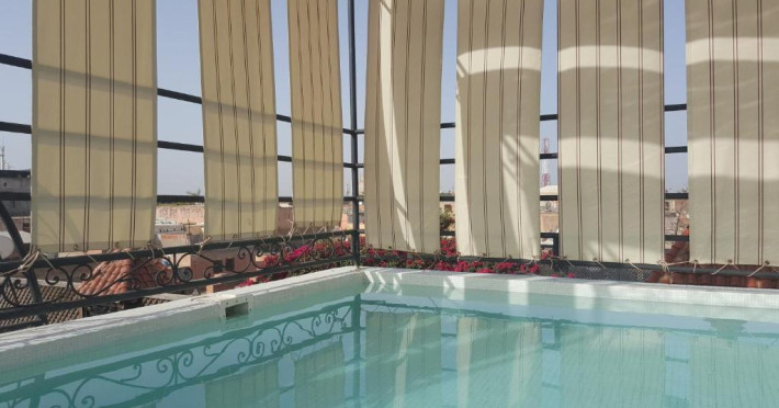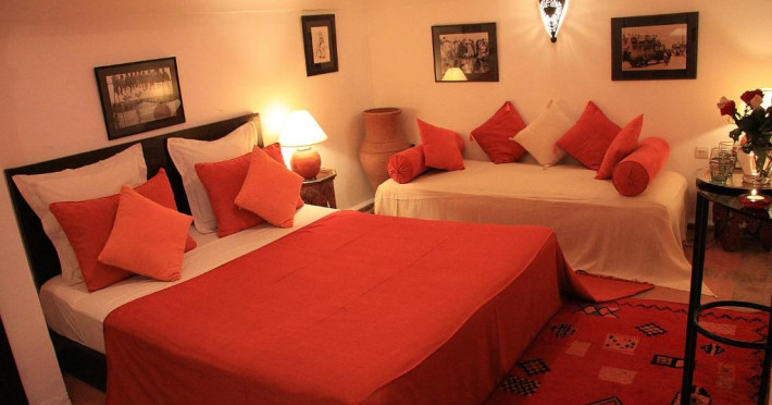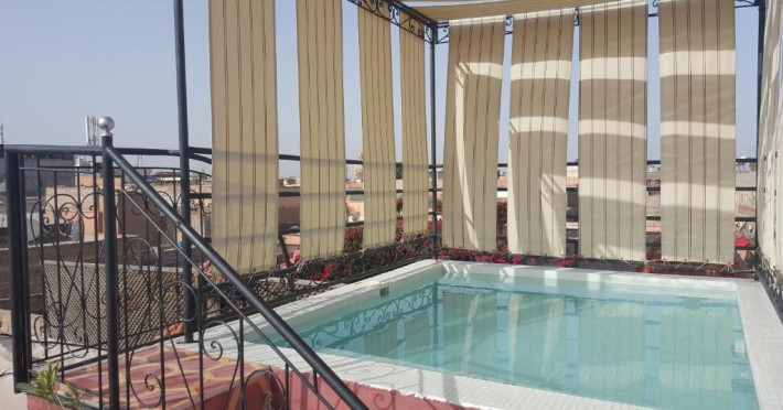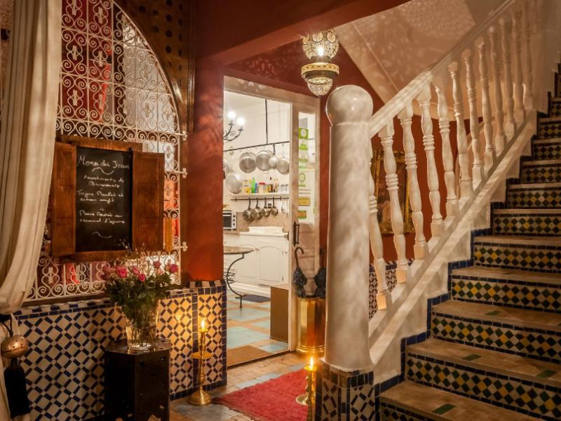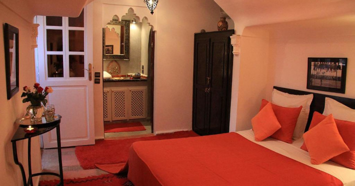 Camerele sunt decorate in stil marocan elegant, cu mobilier artizanal și detalii orientale rafinate. Curtea interioară cu piscină și grădină oferă un spațiu perfect pentru relaxare după o zi de explorare a orașului.