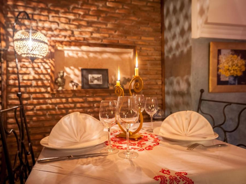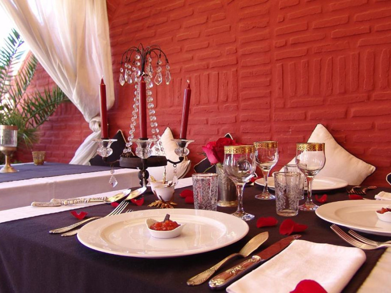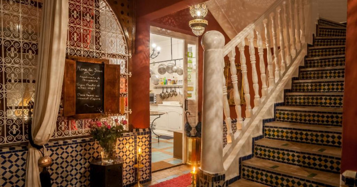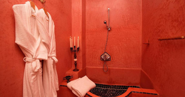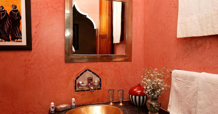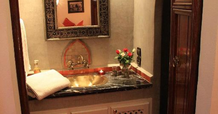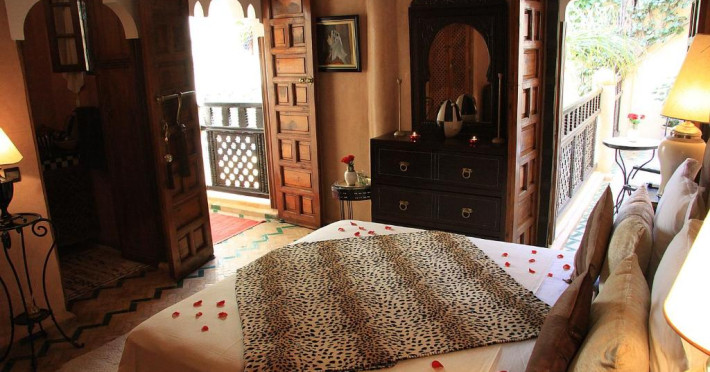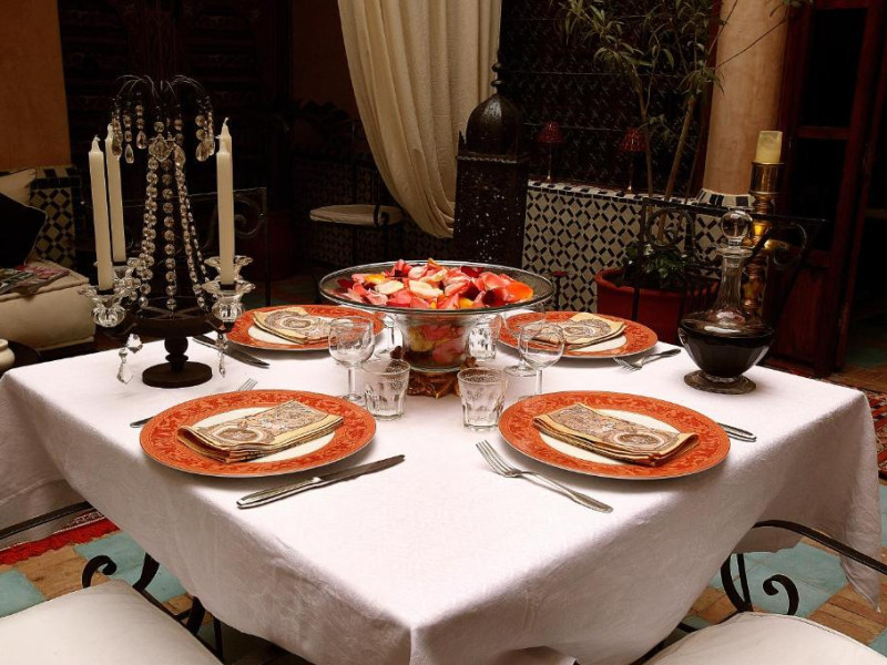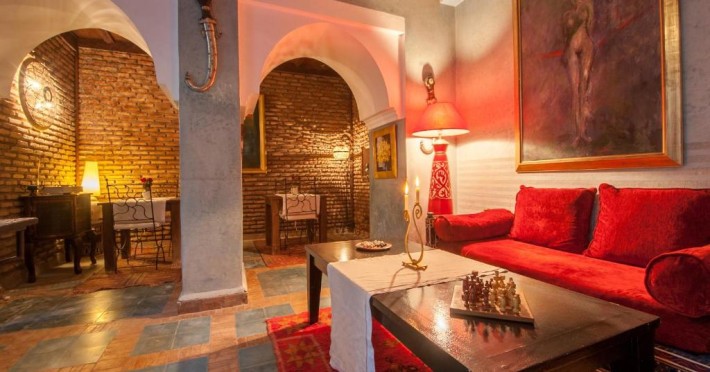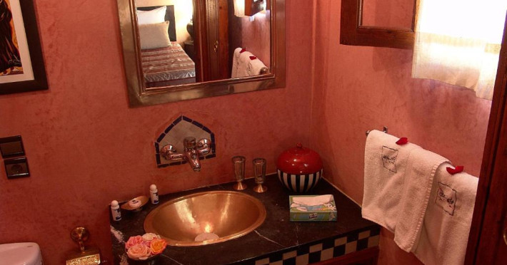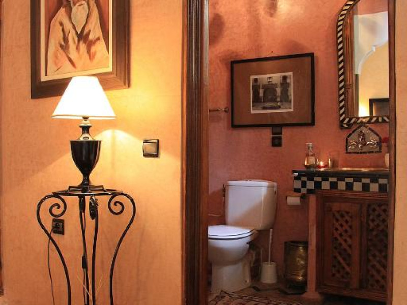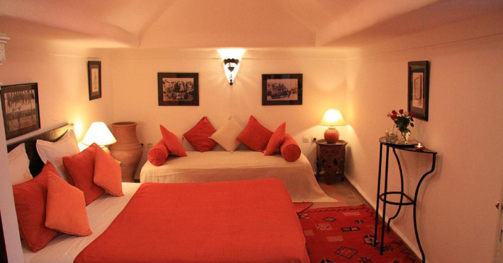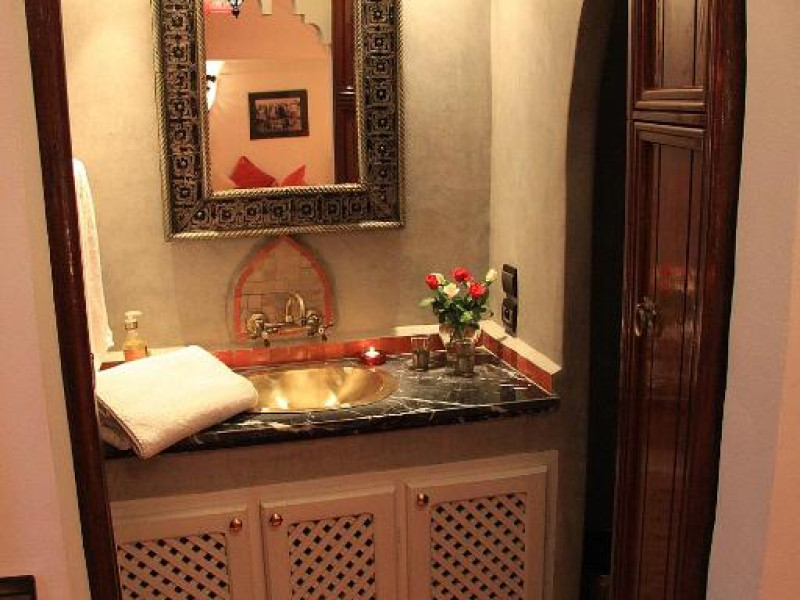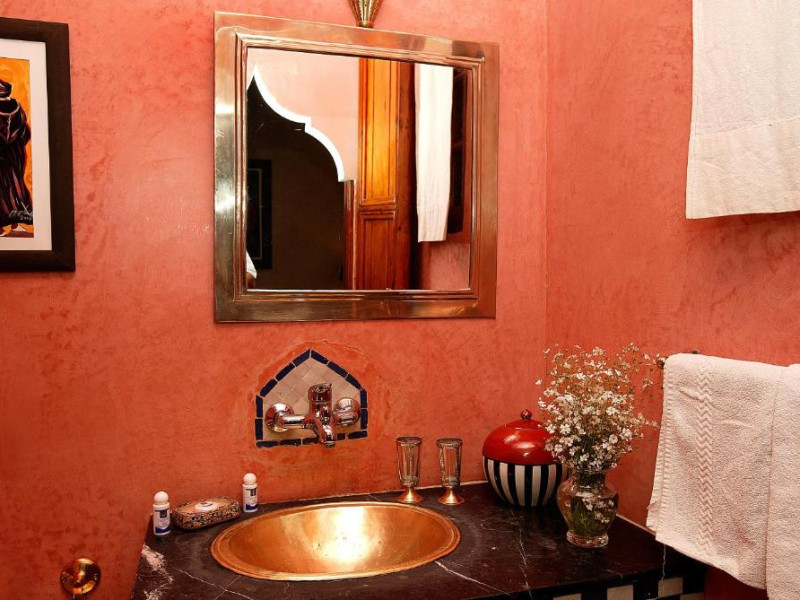 Camerele sunt decorate in stil marocan elegant, cu mobilier artizanal și detalii orientale rafinate. Curtea interioară cu piscină și grădină oferă un spațiu perfect pentru relaxare după o zi de explorare a orașului.