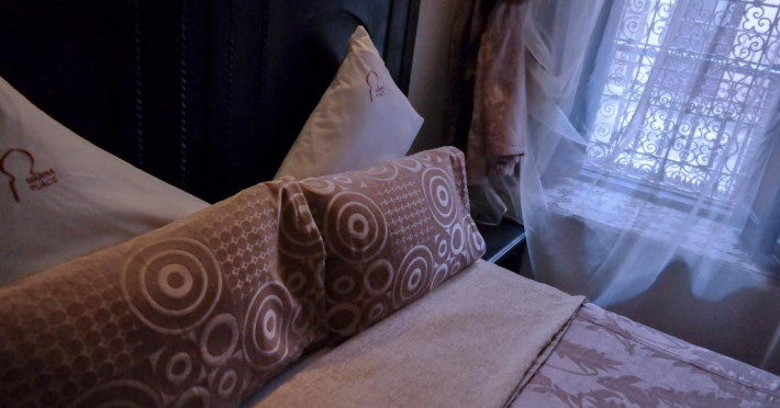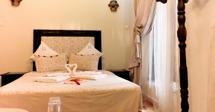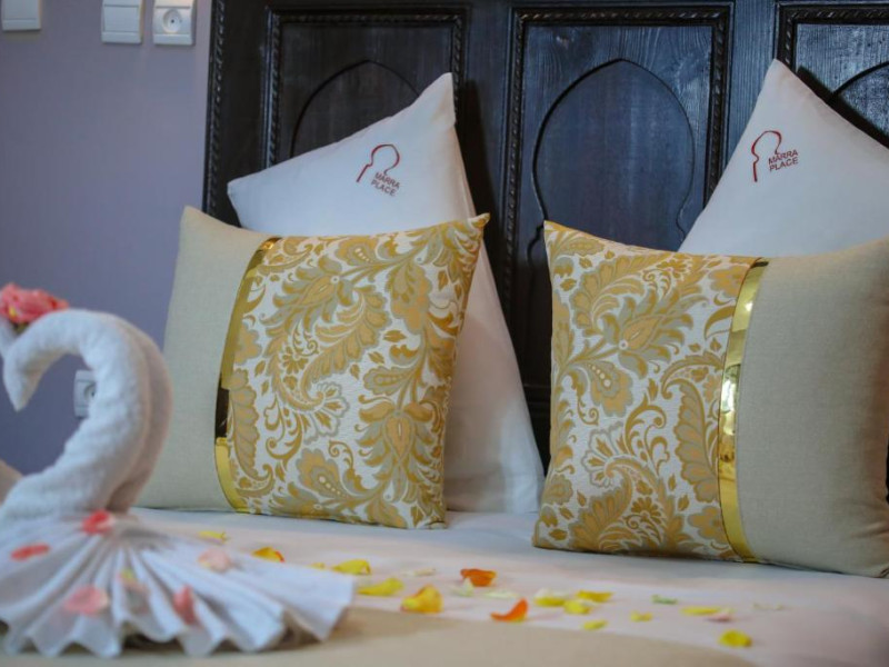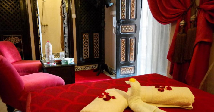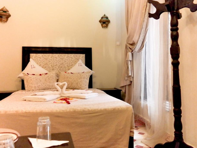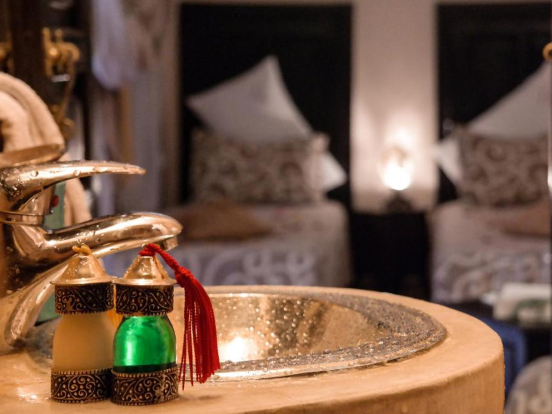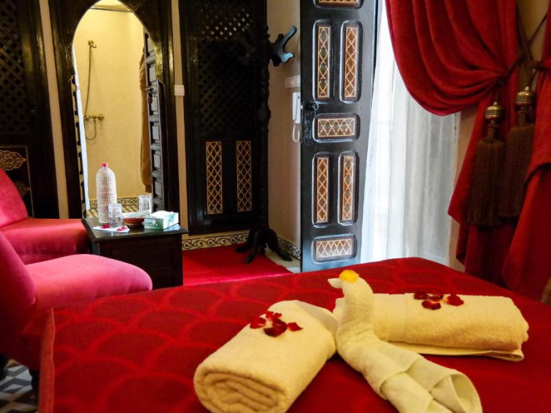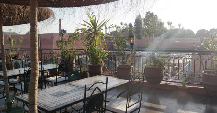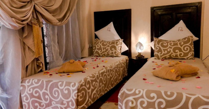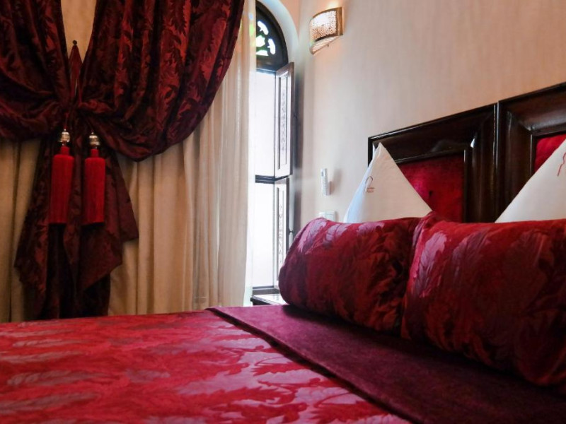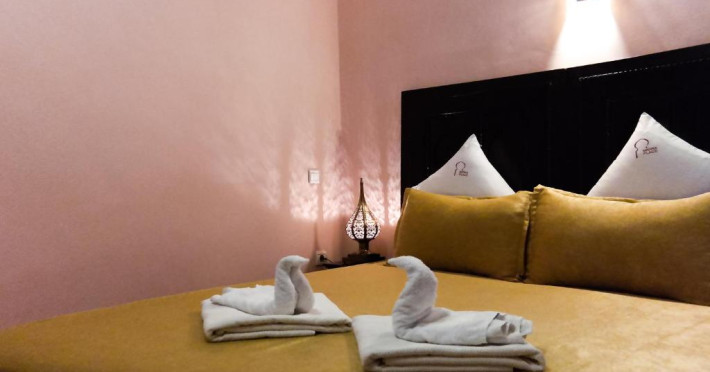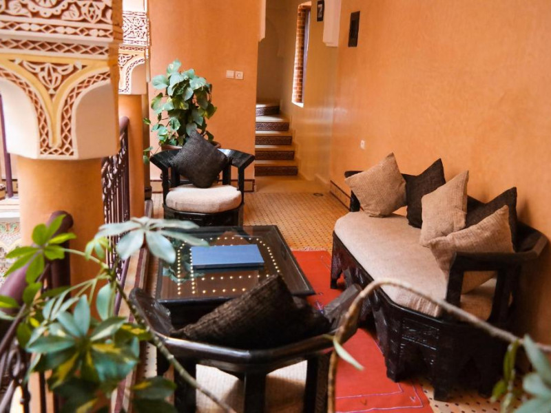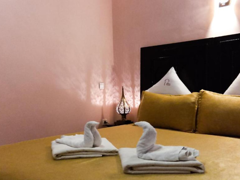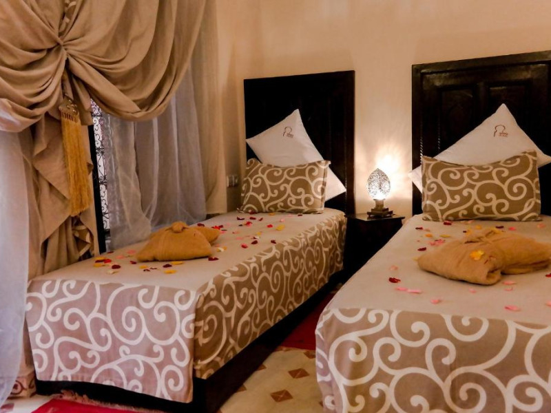 Camerele sunt decorate in stil marocan cu detalii artizanale, mobilier local și băi private elegante. Curtea interioară cu piscină și grădină oferă un spațiu perfect pentru relaxare, in timp ce terasa de pe acoperiș vă invită să admirați panorama spectaculoasă a orașului vechi și a munților Atlas.