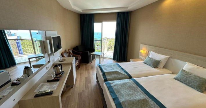 Hotelul Riviera este renovat in totalitate și se află la cațiva pași de plajă Kleopatra și centrul orașului Alanya. Proprietatea este inconjurată de palmieri și are 2 piscine in aer liber. Hotelul a fost renovat in 2014 și oferă camere dotate cu balcon cu vedere la grădină pitorească.