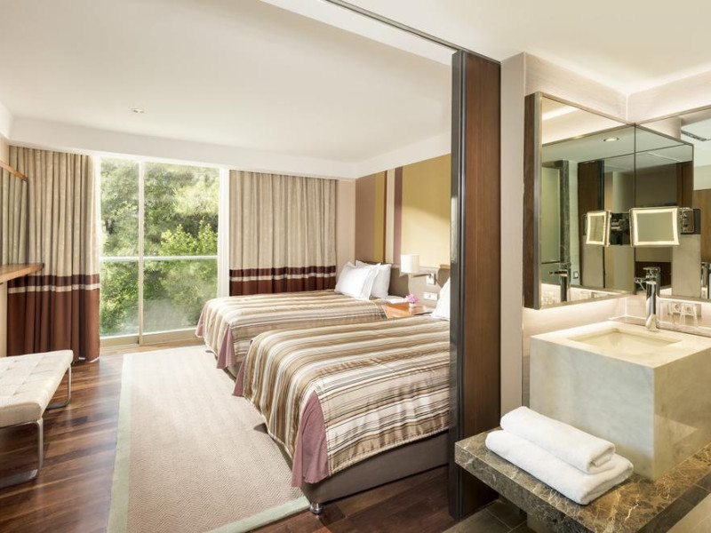 Hotelul dispune de servicii si facilitati diverse precum: restaurant principal, restaurante a la carte, baruri, piscine, loc de joaca, internet, Spa, discoteca, volei pe plaja, aerobic, terenuri de tenis, centru fitness, biliard, baschet, plaja cu nisip. Turistii cazati in acest resort beneficiaza de acces gratuit la The Land of Legends - cel mai mare parc tematic din Turcia. Plaja privata este excelenta pentru cuplurile ce isi doresc intimitate sau familiile cu copii energici.