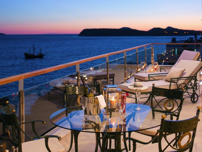 Hotelul Royal Ariston 5 * inaltat deasupra Marii Adriatice, ofera 115 camere recent renovate si o gama larga de facilitati care vor starni entuziasmul oricarui vizitator, fie ca este turist sau in calatorie de afaceri. La cateva minute de renumitul site UNESCO - Orasul vechi din Dubrovnik, bucurati-va de imprejurimile linistite si de privelistea marii. Camerele fermecatoare, elegante si confortabile vor fi o oaza de relaxare, pe langa piscinele in aer liber, o zona de wellness si trei restaurante cu optiuni de luat masa in aer liber.