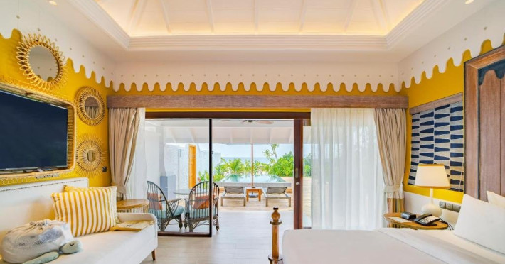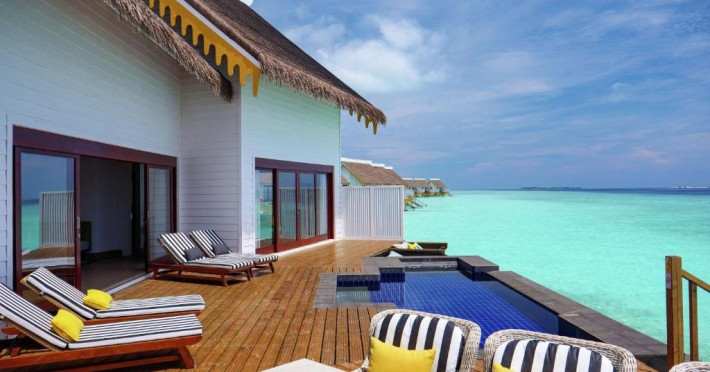 Localizare: Situat in Laguna Emboodhoo, Saii Lagoon Maldives, Curio Collection by Hilton se afla la doar 15 minute de mers cu barca rapida de aeroport. Dotari camere: Balcon cu vedere la mare, menaj 24 de ore pe zi, TV LCD de 42 inchi, inclusiv IPTV si jocuri, aer conditionat, facilitati pentru cafea si ceai, Wi-Fi gratuit, ventilator, seif electronic, uscator de par, fier si masa de calcat la cerere, servicii de spalatorie si curatatorie chimica, articole de baie naturale de la M.I.Y, halate de baie