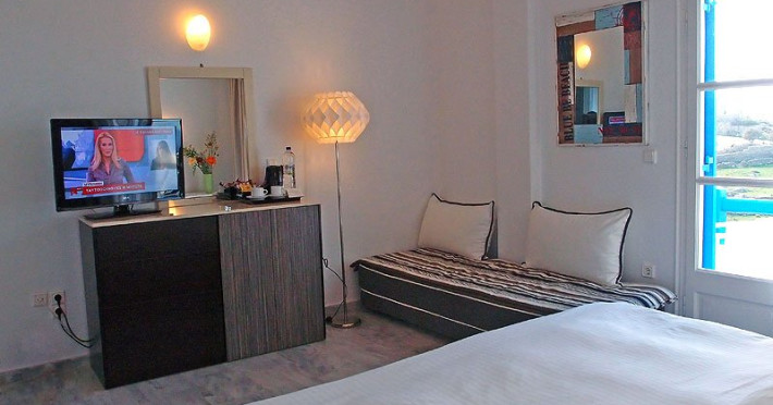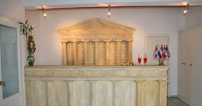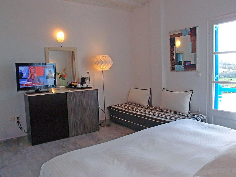 Descriere: Hotelul San Antonio Summerland este construit pe 14 000 mp, cu vedere la noul port din Mykonos. Localizare: La 1,8 km de centrul orasului Mykonos. Facilitati hotel: restaurant, piscina, SPA (contracost), parcare gratuita, sala de gimnastica, doctor, lobby Dotari camere: TV LCD, aer conditionat, telefon, cafetiera, internet wireless, minibar, uscator de par, halate, baie cu cada, balcon Website: http://www.sanantonio-summerland.com/