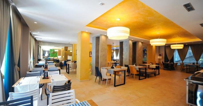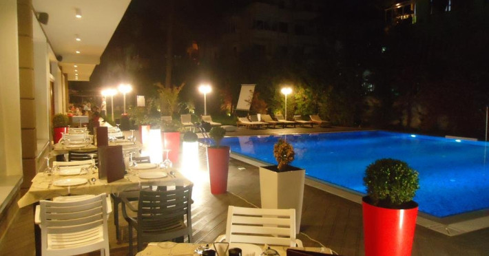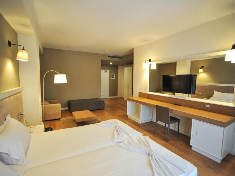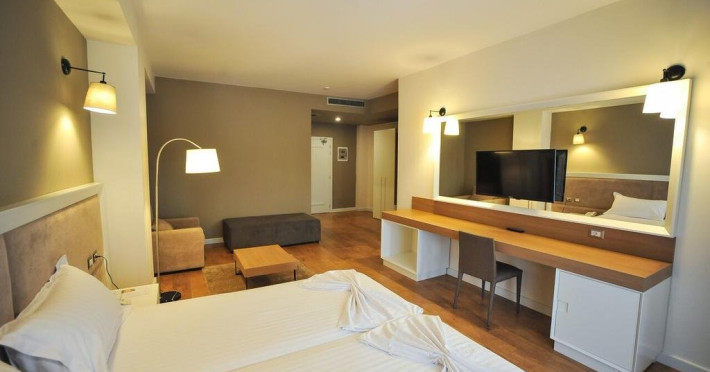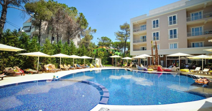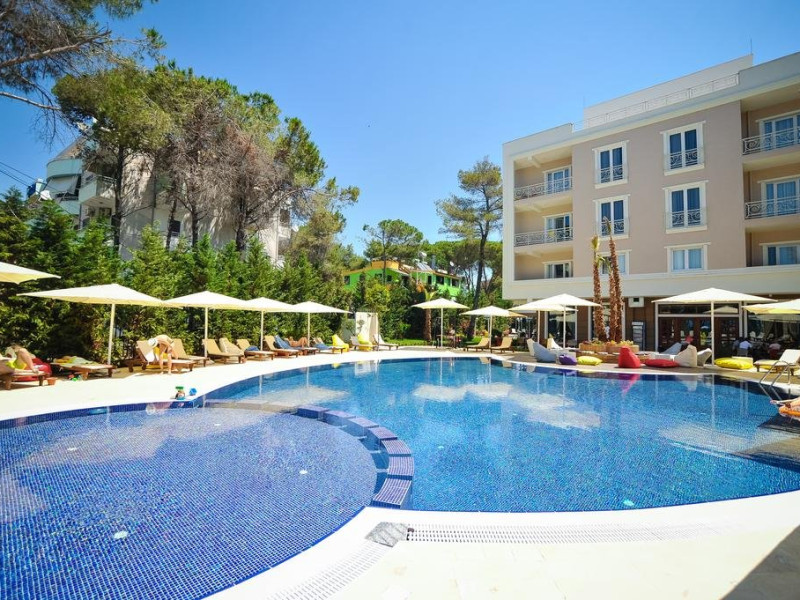 Localizare: Pe plaja lata si cu nisip fin, in Golem, zona Durres. Descriere: In mijlocul gradinilor, aceasta cazare de lux din Golem, ofera 66 de camere si apartamente. Facilitati hotel: restaurant, bar, terasa, piscina interioara si exterioara cu sezlonguri incluse, sauna, loc de joaca pentru copii, plaja privata cu nisip, beach bar, Kids Club, ping pong, sala de conferinte, pereti ignifugi, internet Wi-Fi gratuit, parcare privata. Tip masa: Mic dejun, demipensiune si pensiune completa. Dotari camere: aer conditionat, TV, telefon, seif, minibar, balcon. Web: www.sandybeach-resort.com