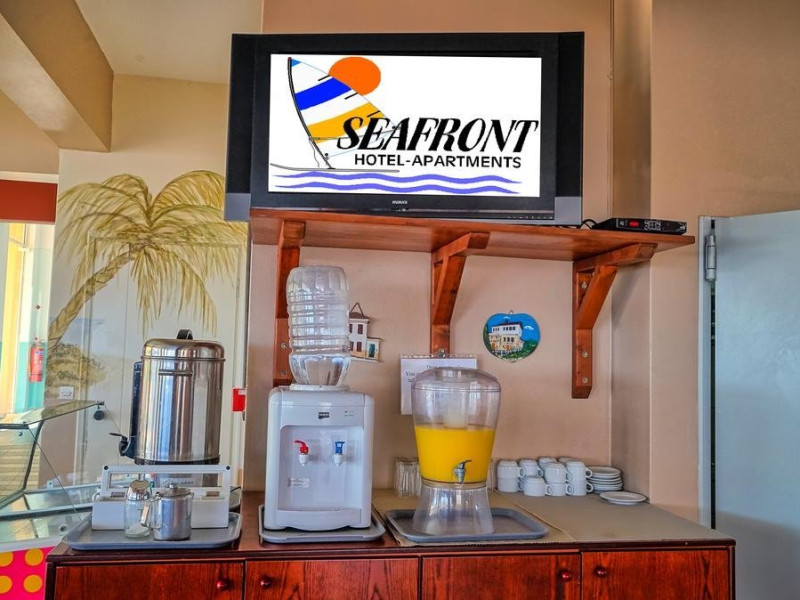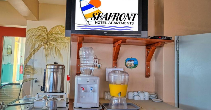 Descriere: Hotelul este alcatuit din mai multe cladiri ce se desfasoara intre plaja si vechiul drum national. Cladirile sunt inconjurate de gradini bine intretinute. Localizare: pe plaja din Adelianos Kampos Plaja: in fata hotelului. Sezlongurile si umbrelele sunt contra cost (aproximativ 5 EUR/set). Dotari camere: aer conditionat, televizor, frigider, acces internet WiFi (gratuit), seif (contra cost, 1.5 eur/zi). Facilitati hotel: restaurant, bar, mini market, piscina, loc de joaca pentru copii. Web site: http://www.seafront-creta.com/ Pentru anumite facilitati din hotel sau din camera, hotelierul poate solicita taxe suplimentare. In momentul sosirii la hotel solicitati receptionerului sa va informeze cu exactitate asupra lor. Taxa de statiune obligatorie - se plateste la receptie: - 0,5 euro/camera/noapte la hotel 1-2*; - 1,5 euro/camera/noapte la hotel 3*; - 3 euro/camera/noapte la hotel 4*; - 4 euro/camera/noapte la hotel 5*; - 0,5 euro/noapte/apartament sau studio la unitatile de cazare tip apartamente si studiouri.