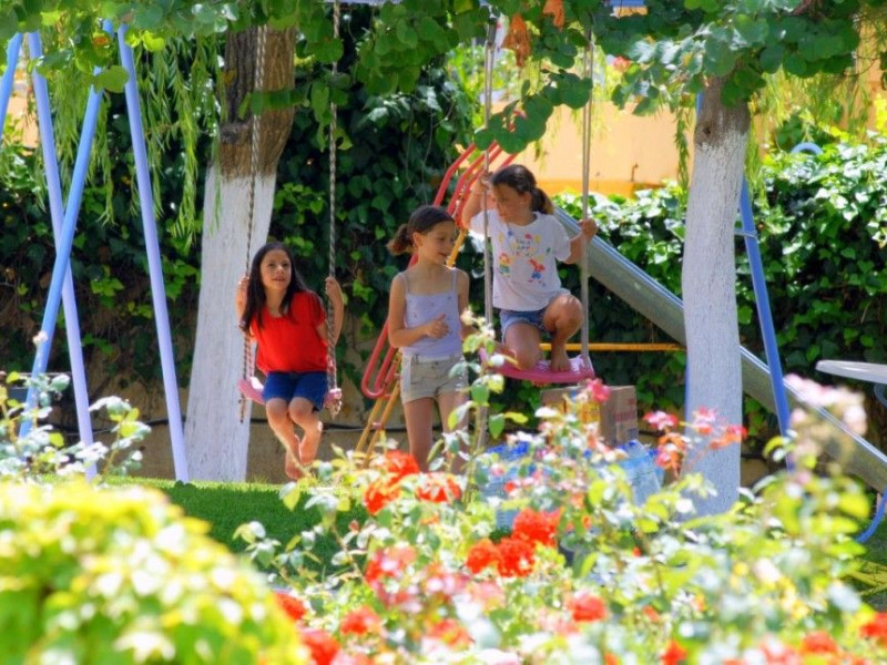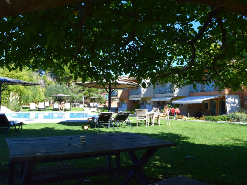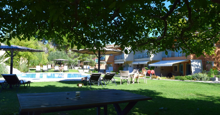 Uniquelly decorated family run apartments in a 4500 sq metres full of grass , trees and birds, only 2-3 minutes walk away from the almost annually award winning Makris Gialos beach.Mobile number: 6932567280