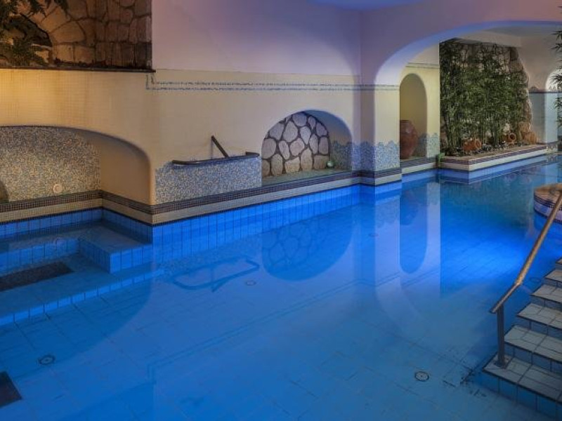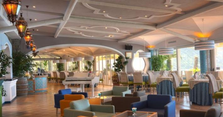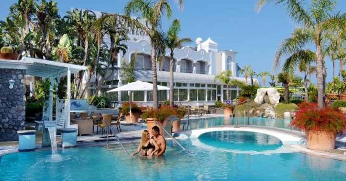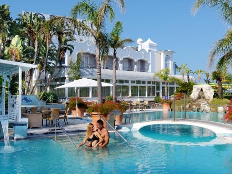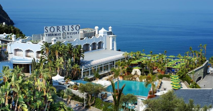 Descriere: Hotelul Sorriso este situat in statiunea Forio si ofera privelisti panoramice spre golful Citara si gradinile lui Poseidon. Traditia in turism, atentia la detaliu si pasiunea constanta pentru fiecare zi de munca sunt caracteristicile hotelului. Sorriso Resort isi intampina clientii cu cinci piscine cu hidromasaj din care 4 sunt cu apa termala. Localizare: Hotelul Sorriso este situat in statiunea Forio de pe insula Ischia, la 8 minute de mers pe jos pana la plaja. Dotari camere: Camerele hotelului Sorriso Resort, confortabile si primitoare, sunt situate in mai multe cladiri separate si sunt echipate cu: baie cu uscator de par, aer conditionat, balcon sau terasa, TV, telefon, minibar, seif (cu plata). Facilitati hotel: doua restaurante, bar, snack bar, 5 piscine (4 cu apa termala), din care doua piscine interioare, centru termal si wellness (cu plata suplimentara), shuttle bus gratuit pana la plaja si pana la gradinile Poseidon. Plaja: plaja Citara se afla la 8 minute de mers pe jos; de asemenea, hotelul pune la dispozitia clientilor si un shuttle bus gratuit pana la plaja si la gradinile Poseidon. Important: suplimentul pentru cina festiva pe data de 15.08 (55 Euro/ persoana) este obligatoriu si se achita direct la hotel.