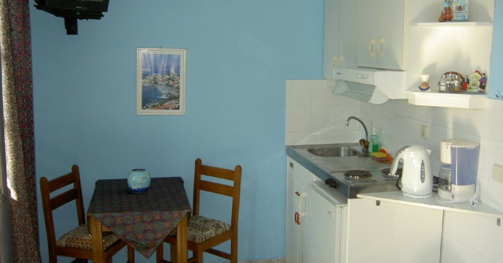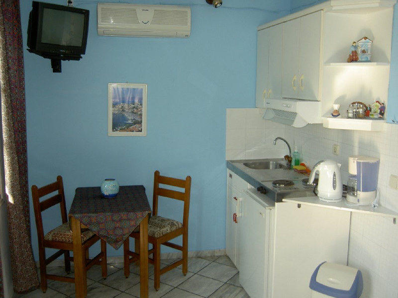Descriere: Studiourile Angela sunt situate in zona Potokaki din statiunea Pythagorion, intr-o zona linistita. Plaja este situata la 150 m distanta de hotel, iar statia de autobuz se afla de asemenea in apropierea hotelului. La 10 minute de mers se gasesc taverne si baruri. Localizare: in zona Potokaki a statiunii Pyhtagorion, foarte aproape de aeroport, la 3 km de centrul statiunii Pythagorion, la 15 km de orasul Samos. Facilitati unitate: piscina in aer liber, gradina si terasa, seif gratuit. Dotari camere: studiourile sunt dotate cu baie cu dus, masa cu scaune, chicineta echipata cu plita de gatit si frigider, TV, aer conditionat (contra cost, 5 Euro/ zi) si balcon sau terasa, acces la internet gratuit. Plaja: combinatie de pietricele si nisip, se afla la 100 m distanta de hotel. Pagina web: www.studiosangela.com