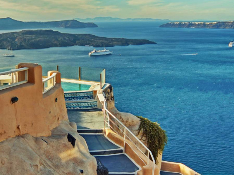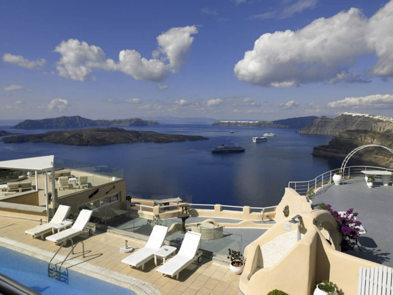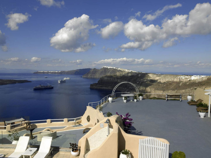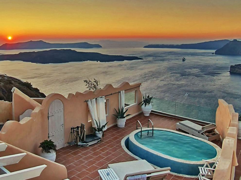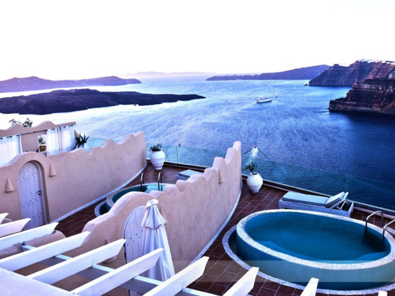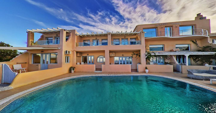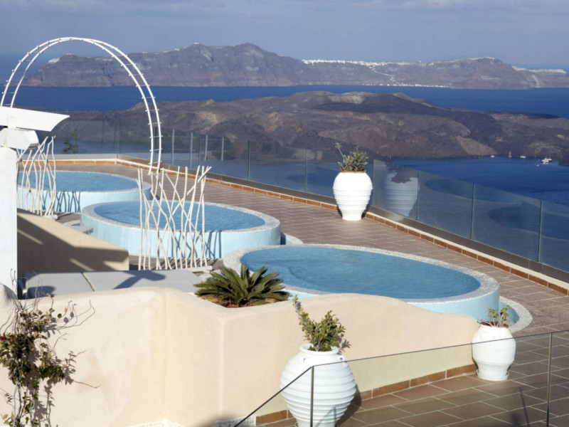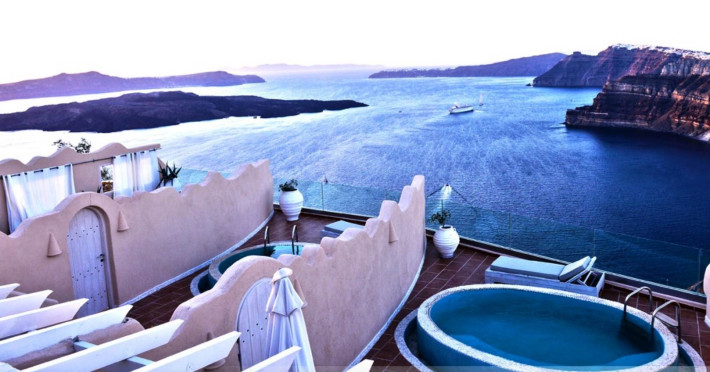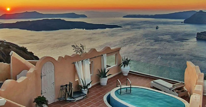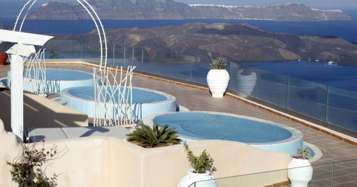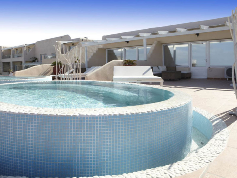 Suites of the Gods, a 5-star Hotel, is located at the village of Megalochori, 350,00 meters above Athinios Seaport, overlooking the caldera, the legendary volcano and the islands glorious sunset. It is situated 6kms away from the international airport of Santorini and 4kms from the capital of the island, Fira. ARCHITECTURE Aegean Cycladic Architecture. CELEBRITIES RESTAURANT The "Celebrities" Restaurant is located in the perfect position within the property, it provides mesmerizing views of the deep blue waters, breathtaking sunsets and of course it overlooks the Caldera and its enchanting Volcano. By fusing together the traditional Cycladic style with modern day design, the low lighting and soft music create a setting of ultimate relaxation and romance. Our Mediterranean Greek cuisine on offer is an ideal way to be introduced to the local flavors of the island. Using only the finest ingredients, combined with our large selection of wines and professional service we guarantee to meet and exceed your expectations. WEDDINGS, CONFERENCES AND EVENTS The Suites of the Gods Spa organize a variety of functions and get togethers. The indoor and outdoor facilities are a perfect choice for weddings, receptions, events, galas, conferences and open-air parties. By offering a wide range advice, organization, and co-ordination services it means we offer a flexible service tailored to your exact requirements. SPA OF THE GODS The Spa was designed to be a feast for the mind and body it is located in an exclusive 100-year-old winery. With wine stained walls and minimalist Cycladic-style, it encourages complete relaxation. With steam caves, an indoor heated pool, treatment alcoves, and waterfalls, the Spa of the Gods is far more than a place for just treatments it is the perfect escape from the ordinary. The treatments offer an inviting magical mixture of ancient and modern, designed to stimulate each and every one of your senses ? touch, taste, smell, sight and sound. The serene beauty of the caves, natural sounds of waterfalls and selected music, taste the delights of the complimentary herbal teas and fresh fruits, smells of aroma therapies, and the touch of our expert therapists all combine for a unique and revitalizing experience. Choose from our wide range of treatments and benefit from extensively trained experts who combine classic and exotic therapies to refresh, relax, hydrate, and tighten. Important Notice: During winter period 1/11/19 - 31/3/20: 1. Reception operates from 08:00 a.m. to 23:00 p.m. 2. Breakfast is served in rooms depending on the total numbers of guests. 3. Restaurant operates until 04:00 p.m. and serves only snacks. Pool bar operates until 05:00 p.m. 4. The Outdoor Hot Tub in the VIP suite will be operational and temperature is subject to weather conditions. 5. Mini-bars are not available in the rooms. 6. Spa is not operational and services are upon request.