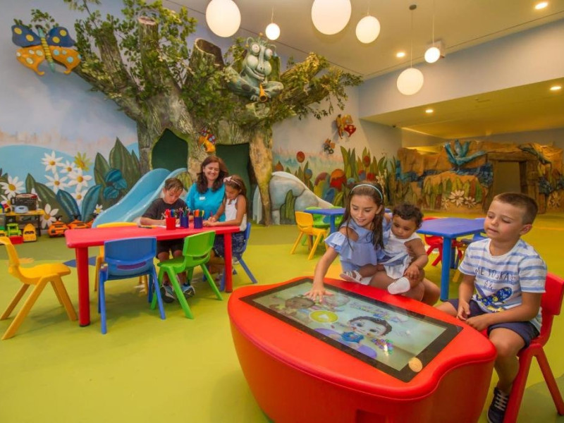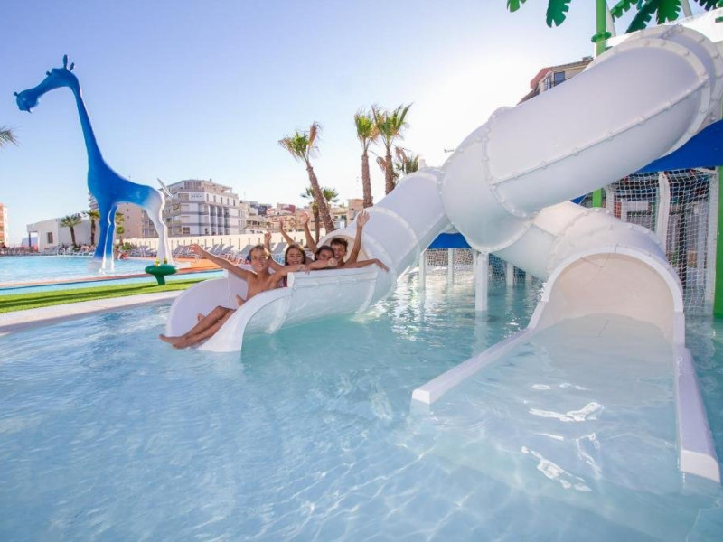 Facilitati hotel: Hotelul pune la dispozitia oaspetilor: restaurant bufet, 3 baruri, dintre care unul la piscina, centru Spa cu piscina interioara, piscina exterioara cu zona cu tobogane pentru copii si splash zone, club pentru copii, sali cu jocuri video, biliard, tenis de masa.