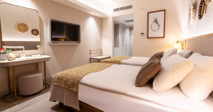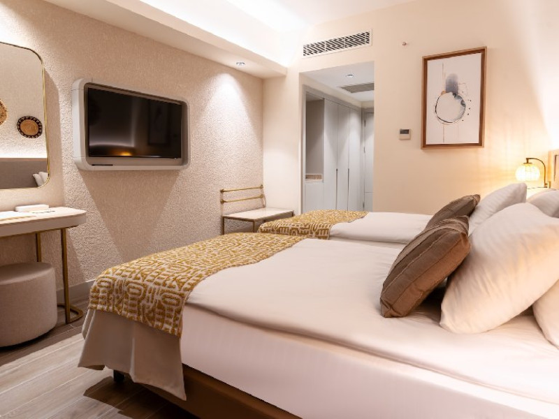 Dotari camere: Hotelul are camerele dotate cu: oglinda de machiaj, sistem de deschidere a usii cu bratara, sistem centralizat de incalzire/racire (controlat din camera), TV si radio satelit, seif, WIFI, telefon, balcon.