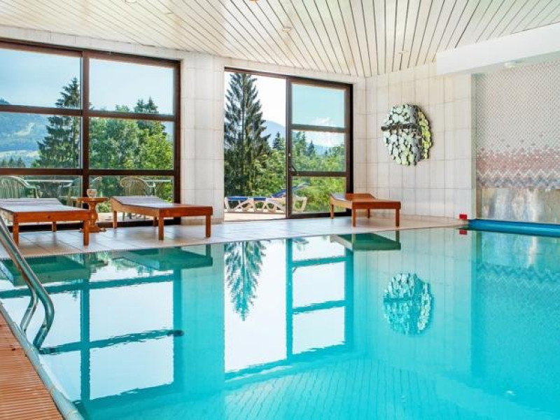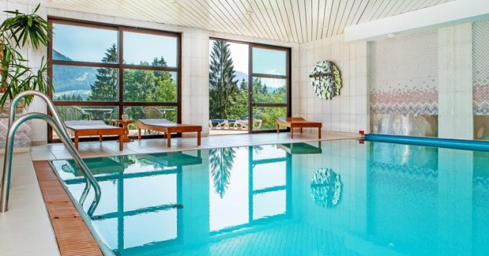 Descriere regiune: In timpul monarhiei habsburgice, actuala statiune Bad Goisern, cunoscuta drept 'cel mai frumos sat al imperiului', se afla la 504m altitudine in interiorul regiunii montane Salzkamergut, in perimetrul rezervatiei naturale si culturale UNESCO Dachestein - Hallstatt. Oferta de petrecere a timpului liber, in timpul iernii, consta in: ski alpin, ski fond, wellness, vizite culturale sau shopping in Salzburg, Linz, Bad Ausee, Bad Ischl, discoteci, localuri traditionale, cafenele. Oraselul Hallstatt, inscris in lista UNESCO a comorilor culturale ale umanitatii, o adevarata perla a regiunii si statiunea imperiala Bad Ischl sunt la cca 11 km departare, iar Obertraun cu partiile Krippenstein se afla la aproximativ 16km. Descriere hotel: Alpenhotel Dachstein este un hotel traditional, situat in afara statiunii Bad Goisern la cca 2,5km de centru. Statia de ski este la 2km departare, iar hotelul ofera shuttle-bus pana la statia de skibus. Dotari camere: Camerele duble au o suprafata de 35mp, sunt nou renovate in 2015 si au in dotare dus/WC, TV satelit, balcon. Camerele familiale au aceleasi dotari, plus canapea extensibila pentru a 3/4a persoana (a5a persoana - copil pana la 14.9 ani - la cerere in pat suplimentar). Facilitati hotel: receptie, lift, restaurant, stuberl, bar, centru, wellness/SPA renovat in 2015 cu piscina panoramica, sauna, baie de aburi, zona de relaxare, depozit pentru schiuri si snowboards, acces wi-fi in zona receptiei, parcare. Website: www.alpenhotel-dachstein.com/
