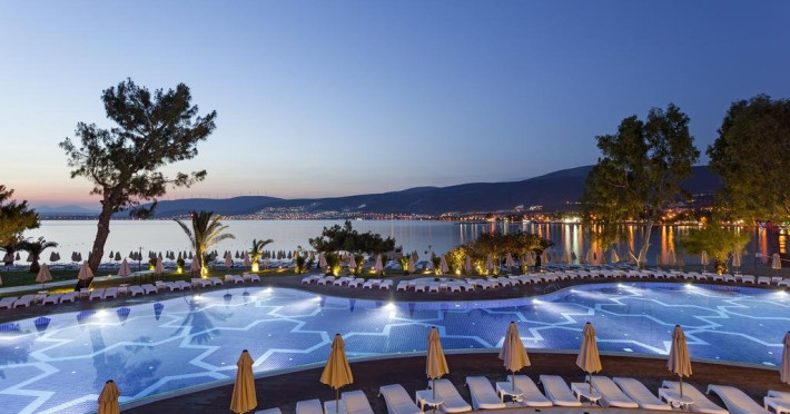 Amplasat intr-un mic golf la Marea Egee si inconjurat de copaci, Aurum Exclusive Club - Ultra All Inclusive ofera o plaja privata, o piscina in aer liber si un doc de lemn. Localizare: Aeroportul Milas-Bodrum se afla la 47 km de Clubul Exclusiv Aurum - Ultra All Inclusive. Dotari camere: Camerele sunt situate in cladiri cu 2 etaje si includ un TV prin satelit, un minibar si un balcon. Baia privata are articole de toaleta gratuite si un uscator de par. Facilitati hotel: Restaurantul hotelului serveste mic dejun, pranz si cina in stil bufet. Bauturi locale si importate sunt incluse. Exista, de asemenea, 2 restaurante a la carte care ofera bucatarie italiana si fructe de mare. Sunt disponibile5 baruri, 3 piscine in aer liber, un centru SPA, club de noapte, sala de sport, mini club pentru copii, umbrele la plaja, internet wi-fi gratuit in lobby.Oaspetii pot juca un joc de tenis de masa, biliard sau minigolf, precum si canotaj sau tir cu arcul. Plaja: situata la 50m de hotel. http://www.aurumhotels.com.tr/exclusive/