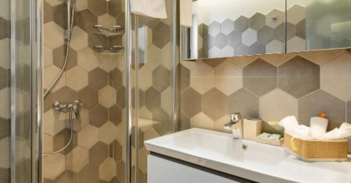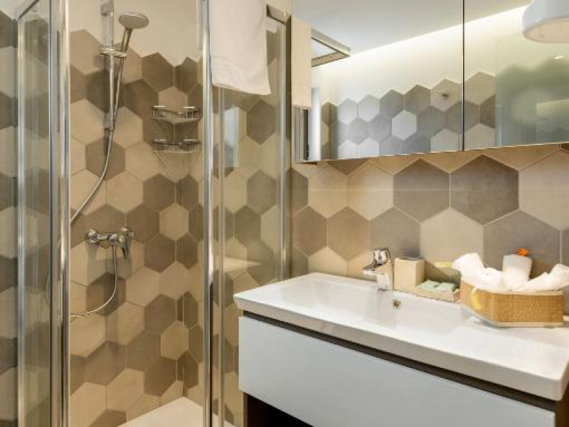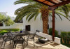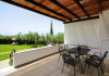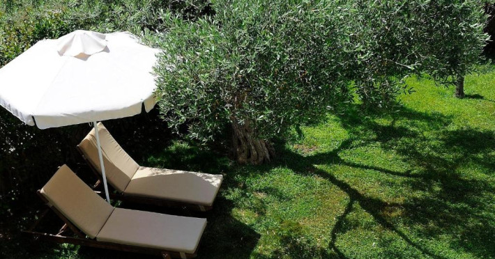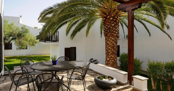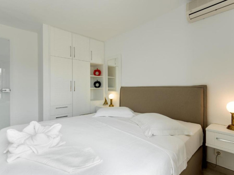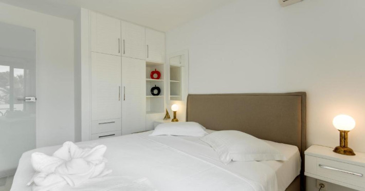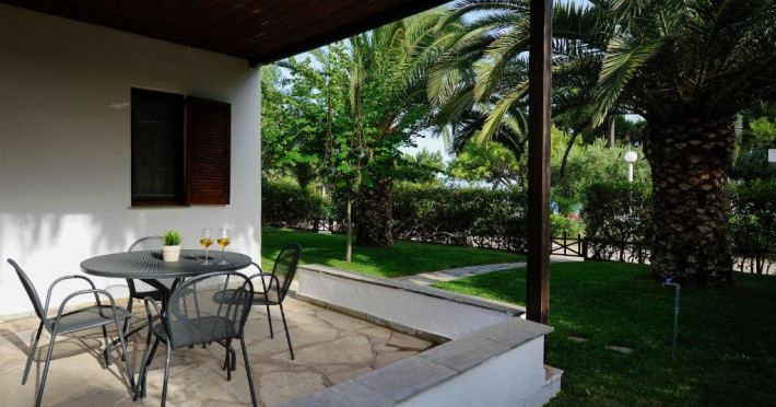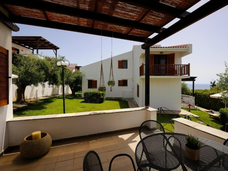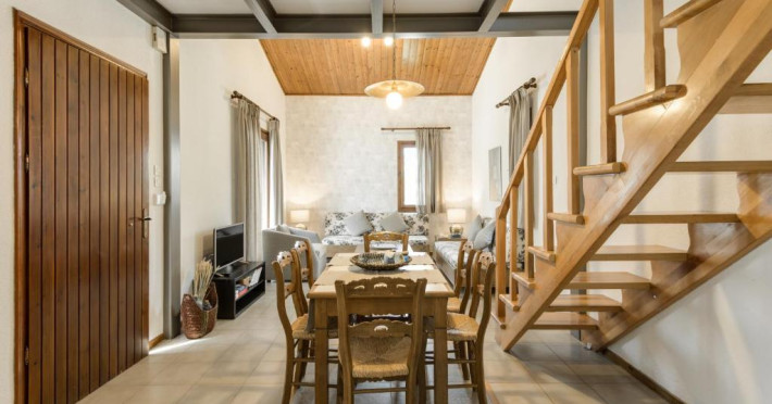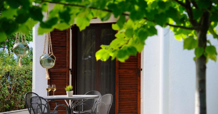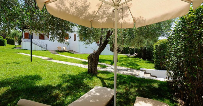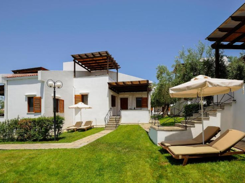 Terasele pavate cu piatra, cu acces direct la gradina, sunt umbrite cu pergole din lemn si ofera un plus de intimitate oaspete de la Trikorfo Beach. Elemente precum acoperișul cu țiglă, tavanul din mobilierul sculpat manual și oferă sejurului un plus de lux modern.