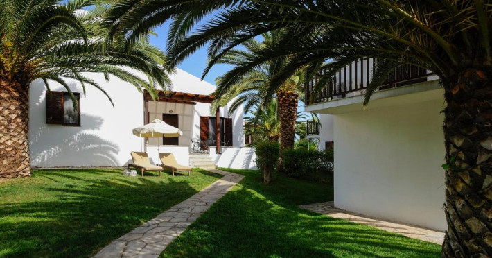 Răspandite prin grădinile complexului Trikorfo Beach, unități de cazare spațioase de tip maisonette oferă o atmosferă primitoare și intimă. Toate unitățile de cazare au un lounge spațios amenajat cu gust, bucătărie bine utilată, TV prin satelit și aer condiționat.