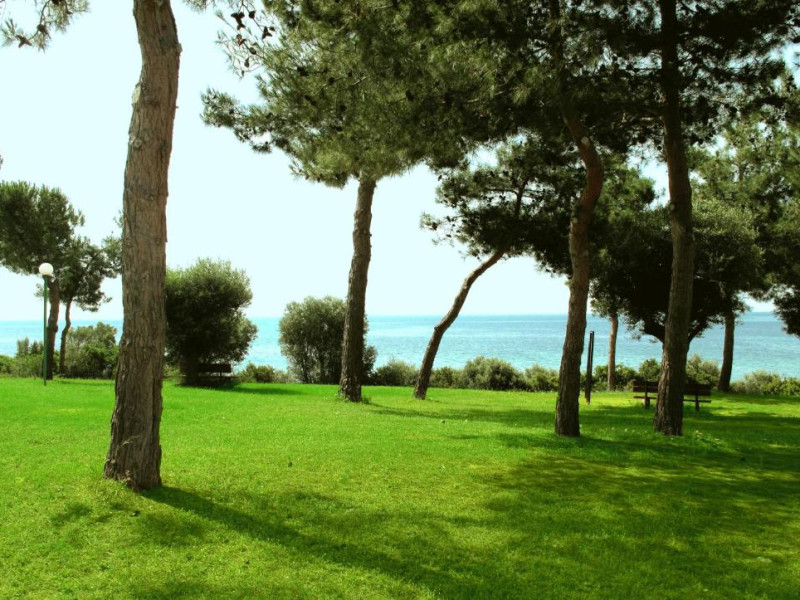 Trikorfo Beach oferă vedere la plajă cu nisip auriu, fiind situată in mijlocul unei livezi cu măslini bătrani, pe o suprafață care se intinde de la marea cristalină pană la versanții cu vedere panoramică din apropiere. Proprietatea se află chiar in centrul Peninsulei Halkidiki, principala destinație de vacanță din nordul Greciei.