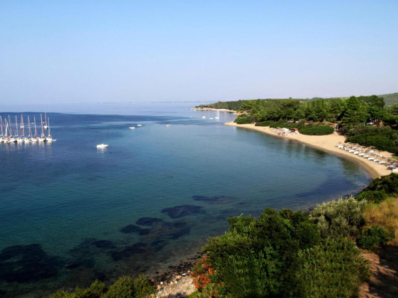 Pe o rază de aproximativ 3 km se găsesc taverne, baruri și magazine. Pe langă frumusețea naturală a zonei, oaspeții pot explora orașul antic Olinthos, renumită peșteră Petralona și orășelul Poligiros. De asemenea, se pot organiza excursi de o zi la Muntele Athos.