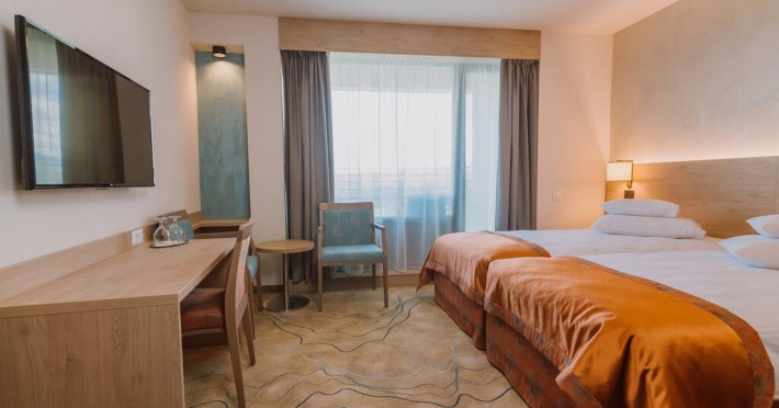 Hotelul URSINA ENSANA HEALTH SPA HOTEL este situat vis-a-vis de Hotelul Danubius, in centrul statiunii Sovata.