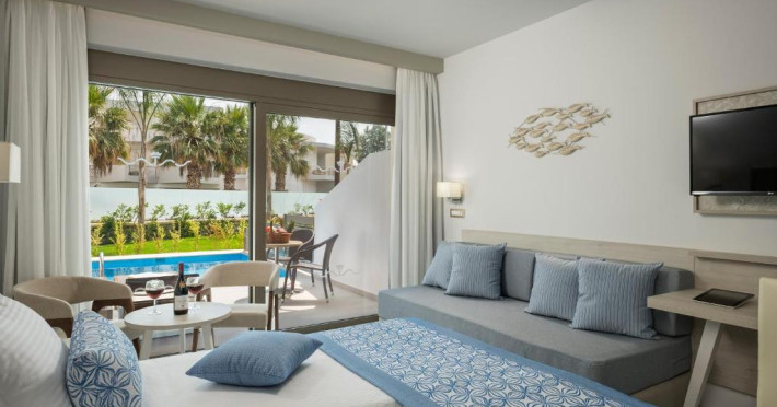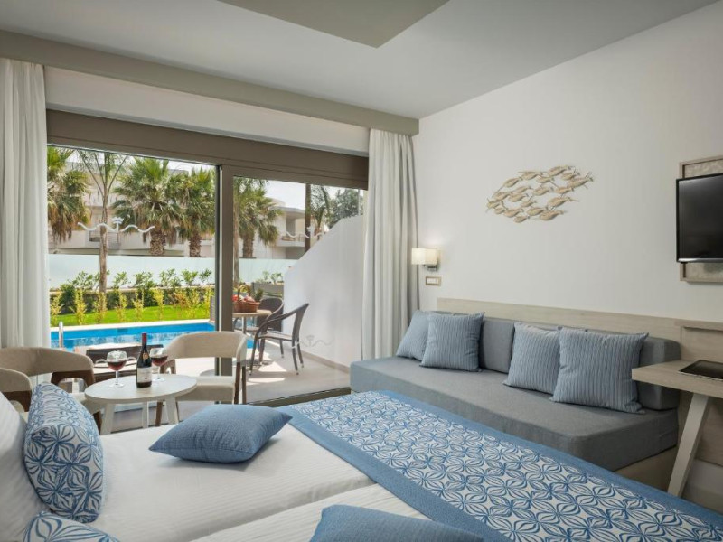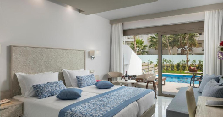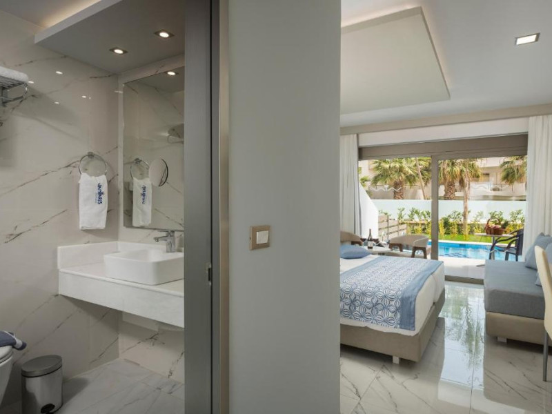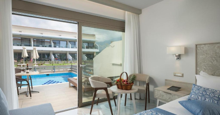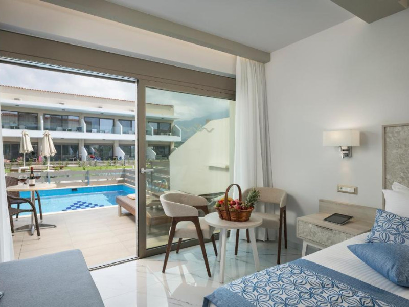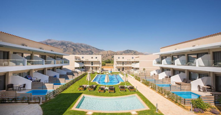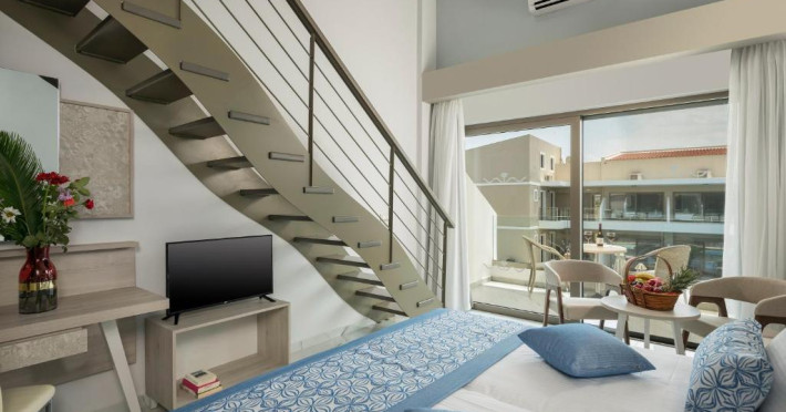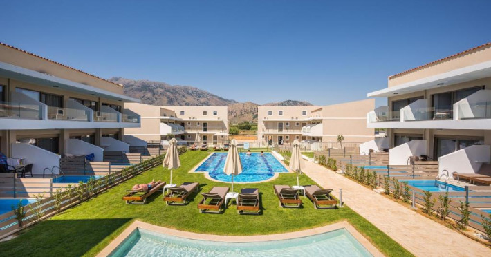 Hotelul este situat langă (250 m) de cea mai lungă plajă de nisip a insulei Creta și este locul ideal pentru vacanțe.